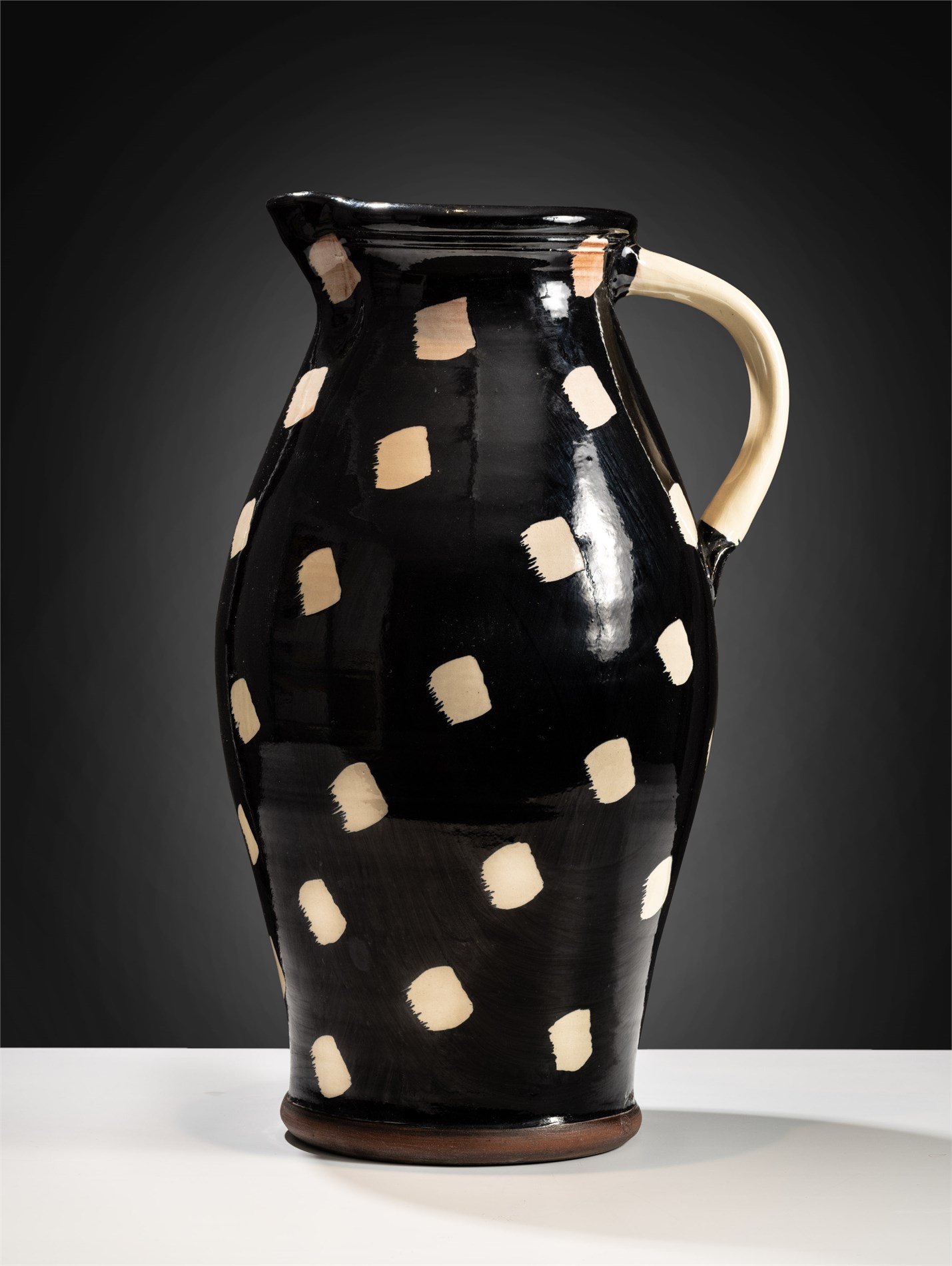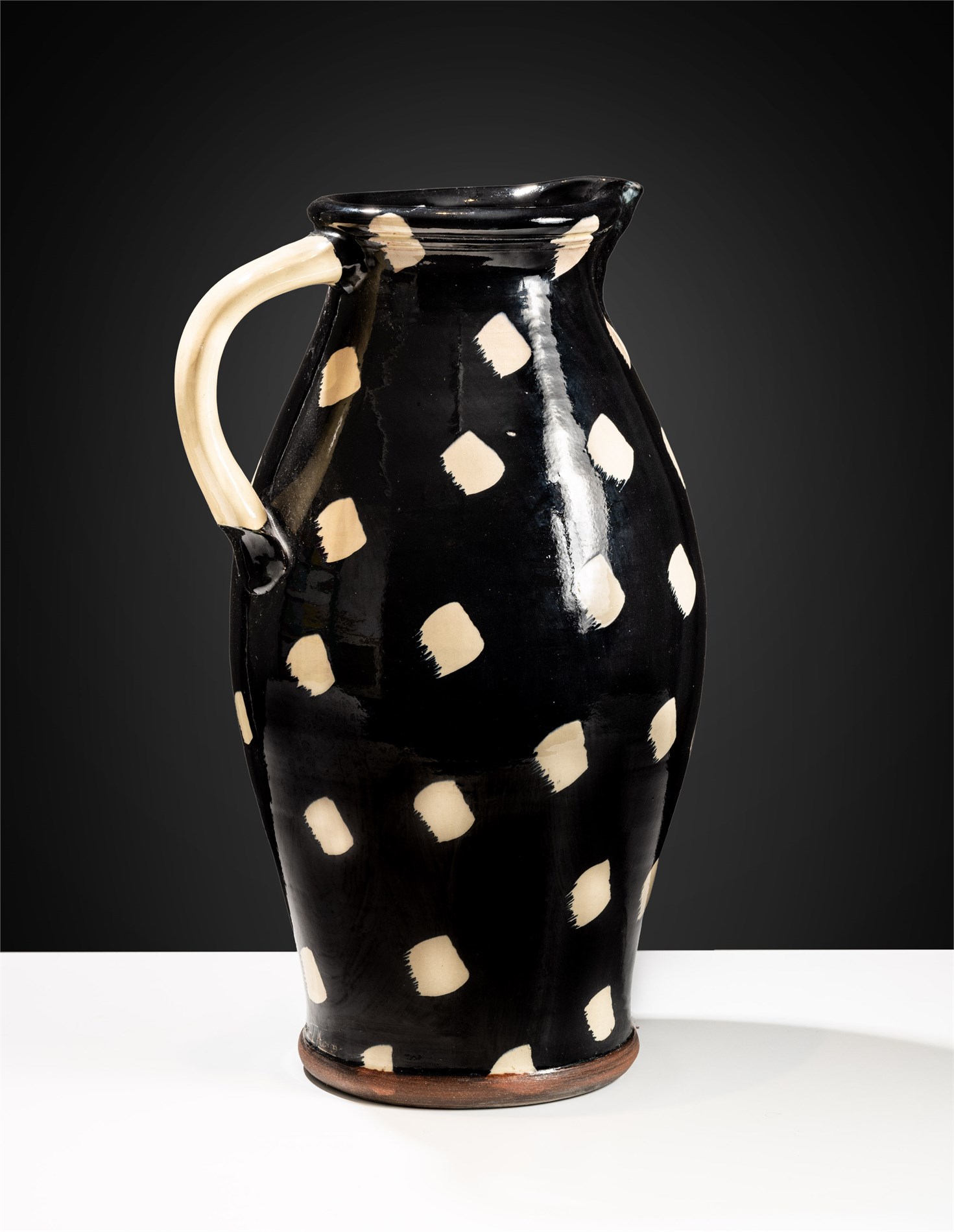 Krukke med hank, Glasert keramikk, høyde 56 cm, Signert nede: Sverre T Holmen