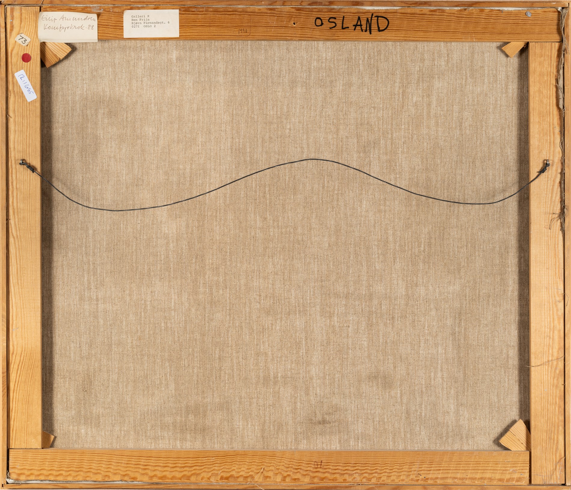 "Komfyrkrok" 1988, Olje på lerret, 60 x 70 cm, Signert nede til venstre: Eilif A, Titulert på etikett bak på blindrammen.