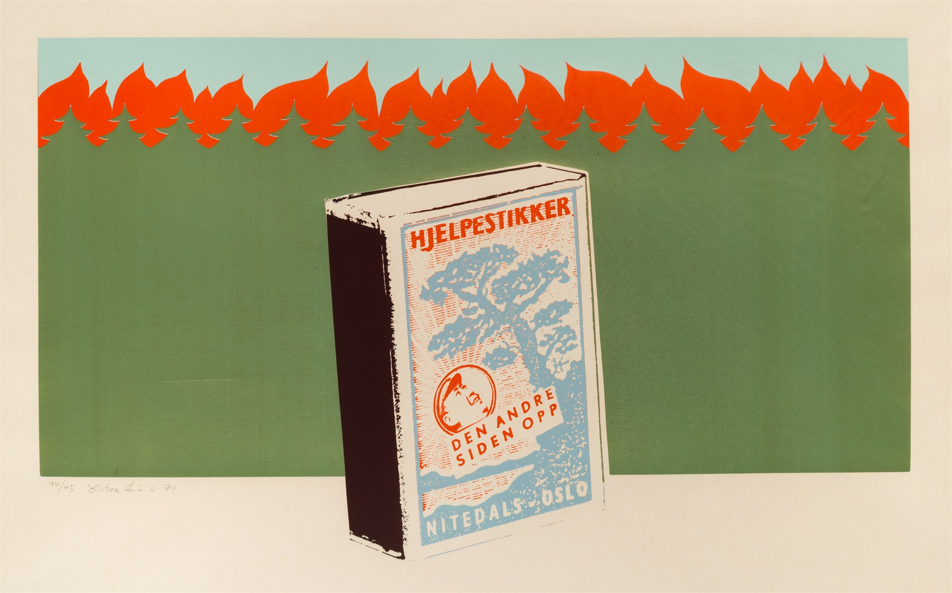"Hjelpestikker" 1971, Silketrykk, 44/45, 42 x 70 cm, Signert nede til venstre: Victor Lind