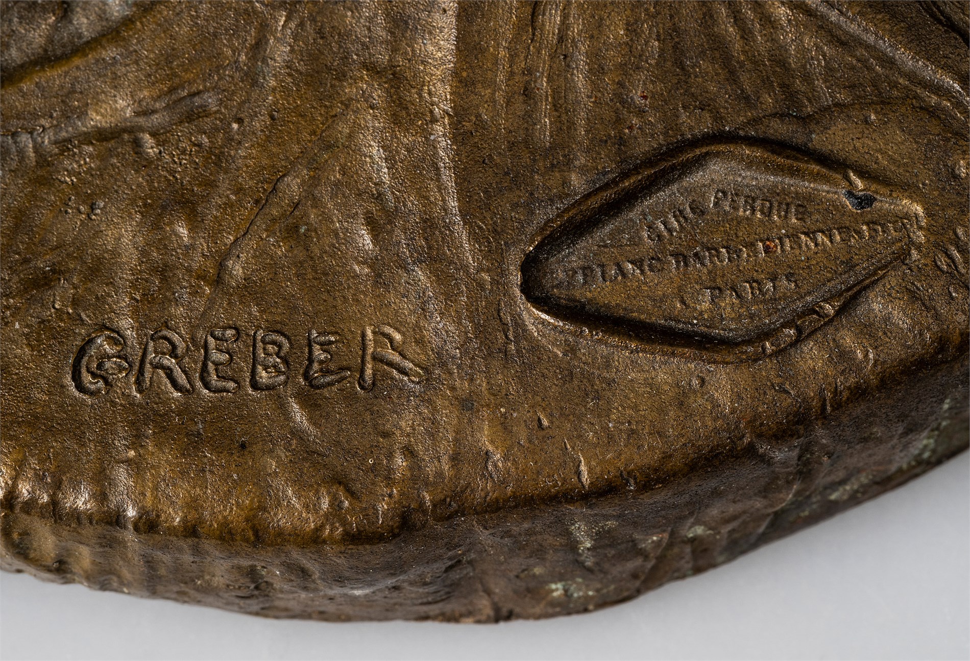 Skulptur utført i bronse datert til 1800/1900-tallet. Signert bak på plint: GREBER.