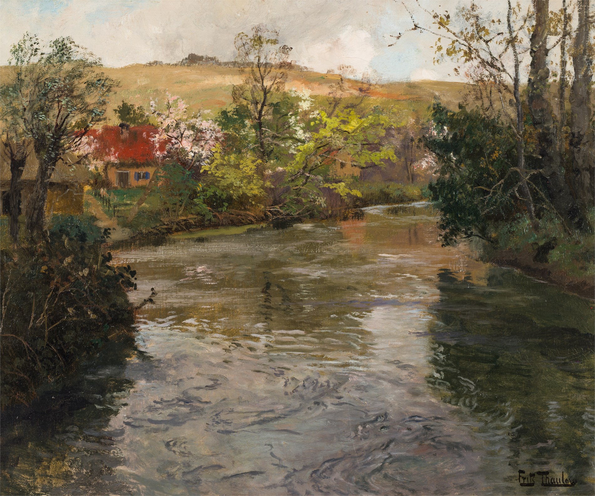 "La riviere". Olje på lerret, 50 x 61 cm. Signert nede til høyre: Frits Thaulow