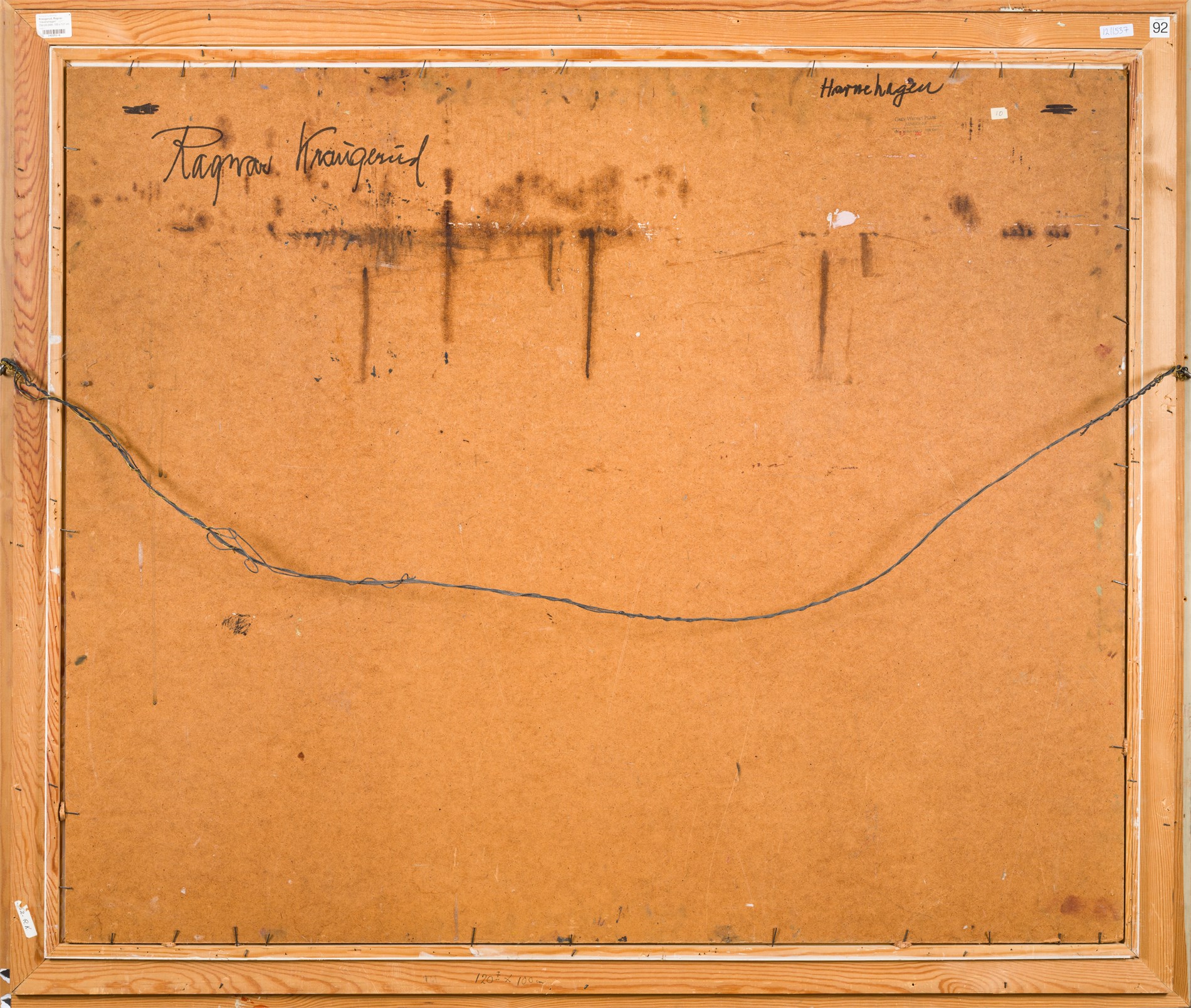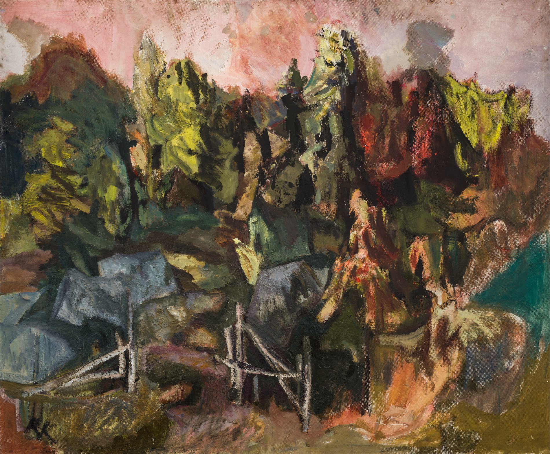 "Havnehagen", Olje på plate, 100 x 121 cm, Signert nede til venstre: RK