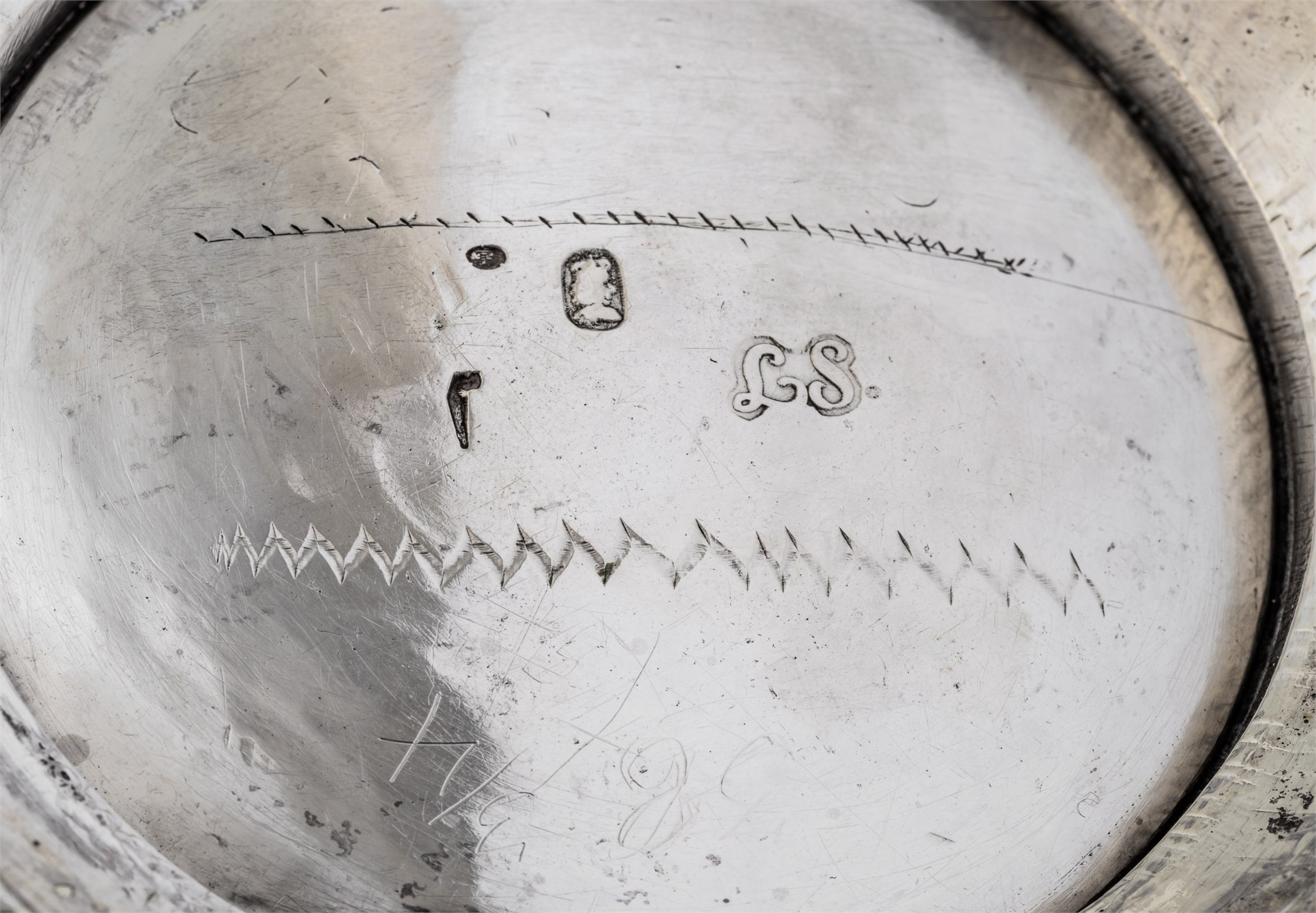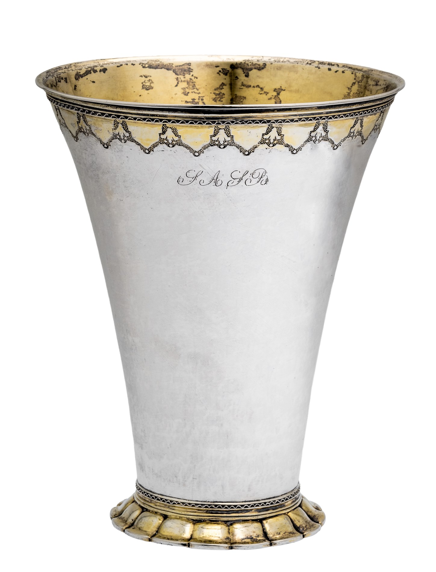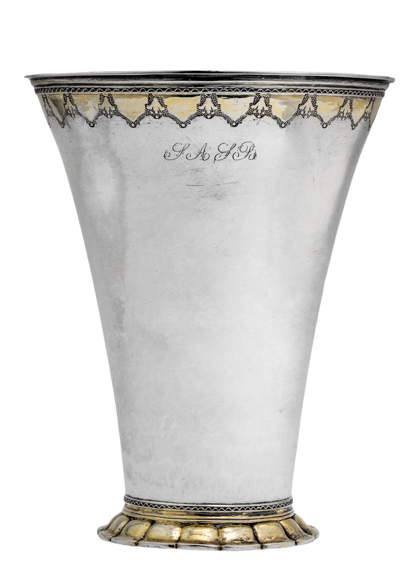 Trompetformet på rund fot, bårdekor, delvis forrgyldt, Lorens Erikson Stabæks, Stockholm 1745,