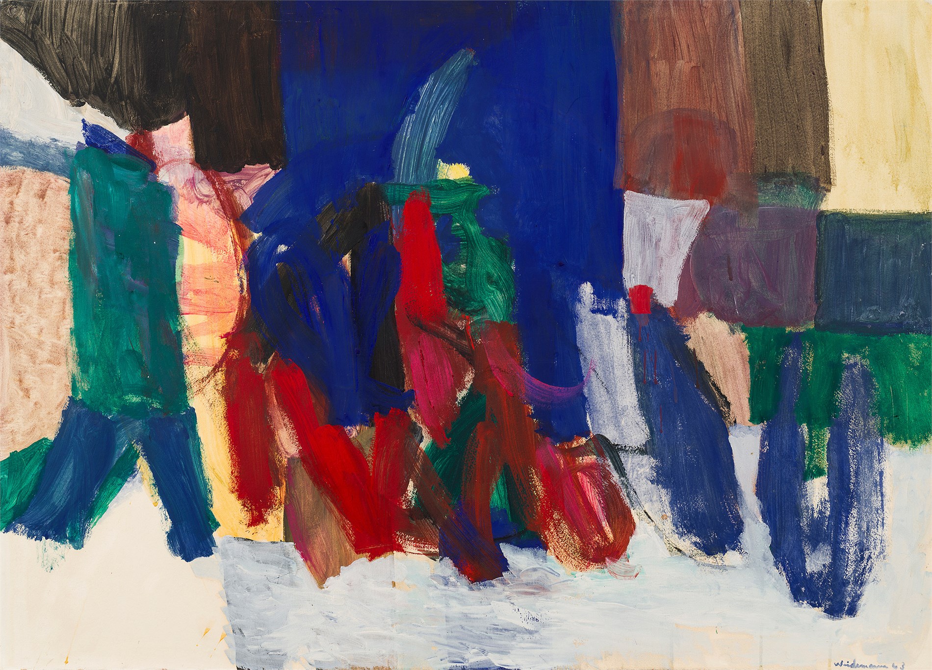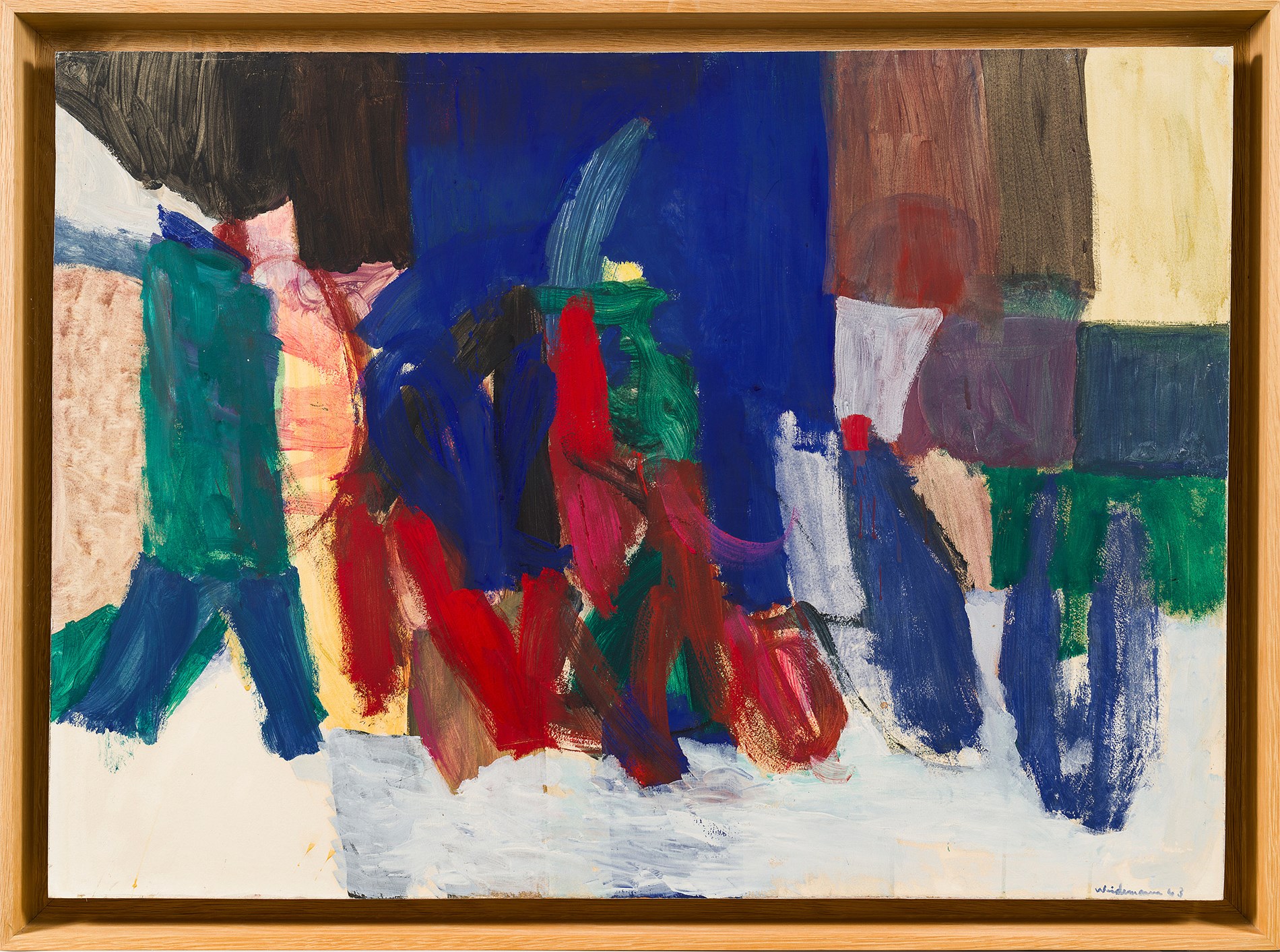 Tempera på plate, 57 x 79 cm, signert og datert nede til høyre: Weidemann 63