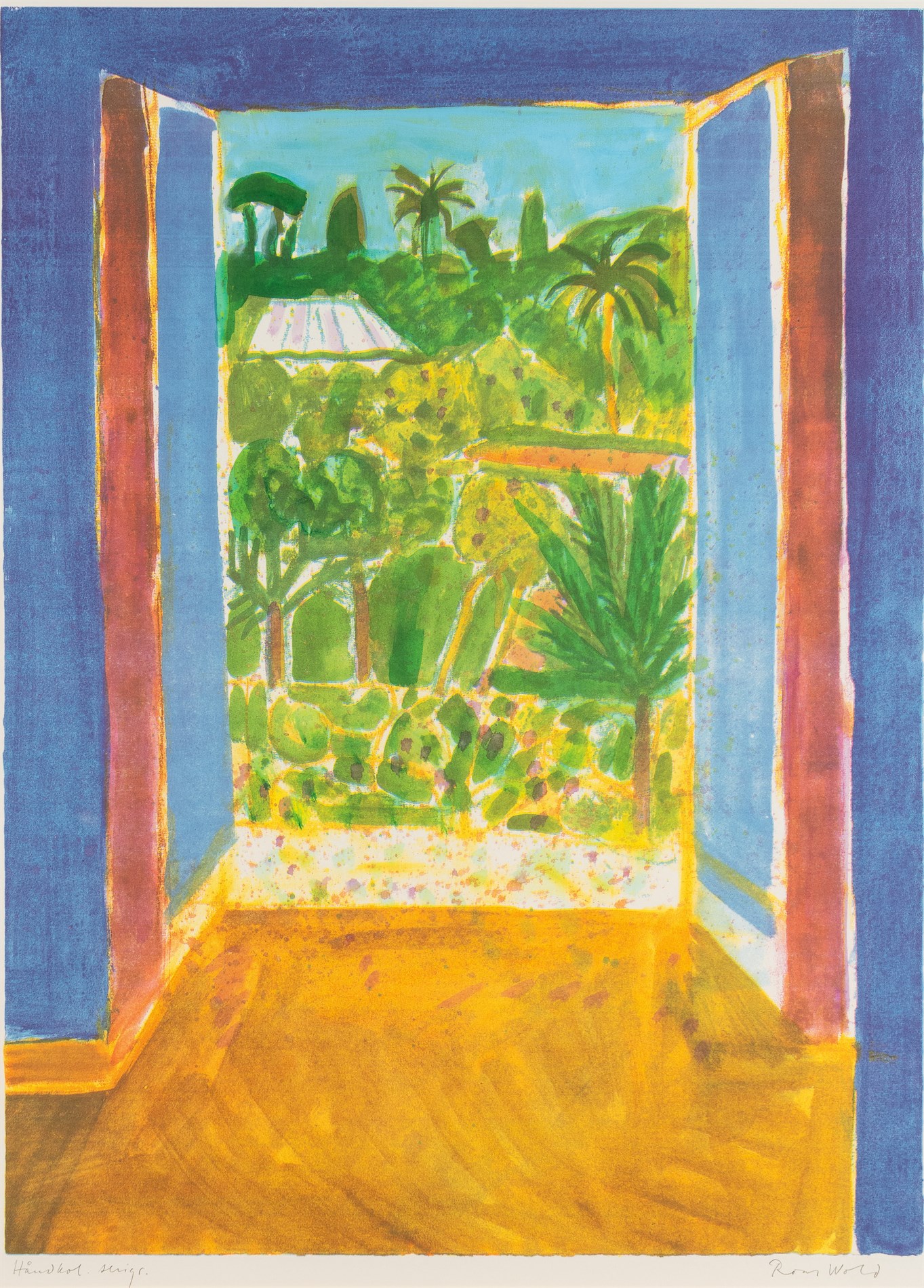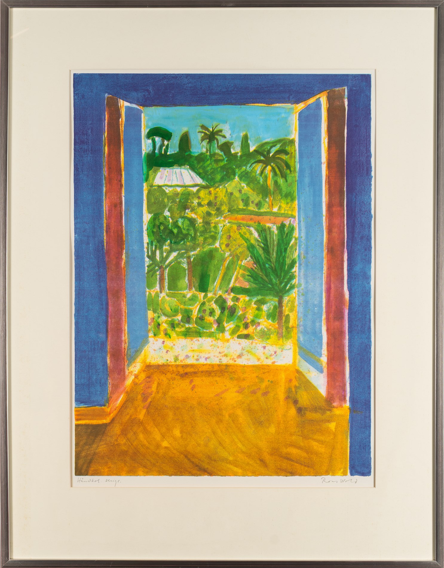 Håndkolorert serigrafi, 63 x 47 cm, signert nede til høyre: Roar Wold
