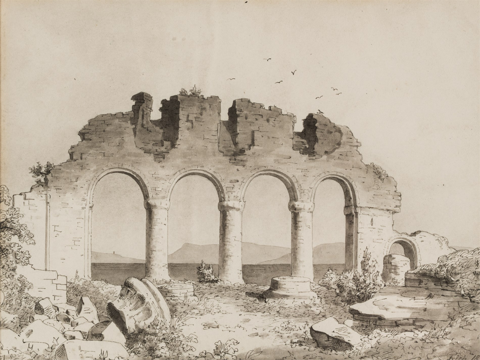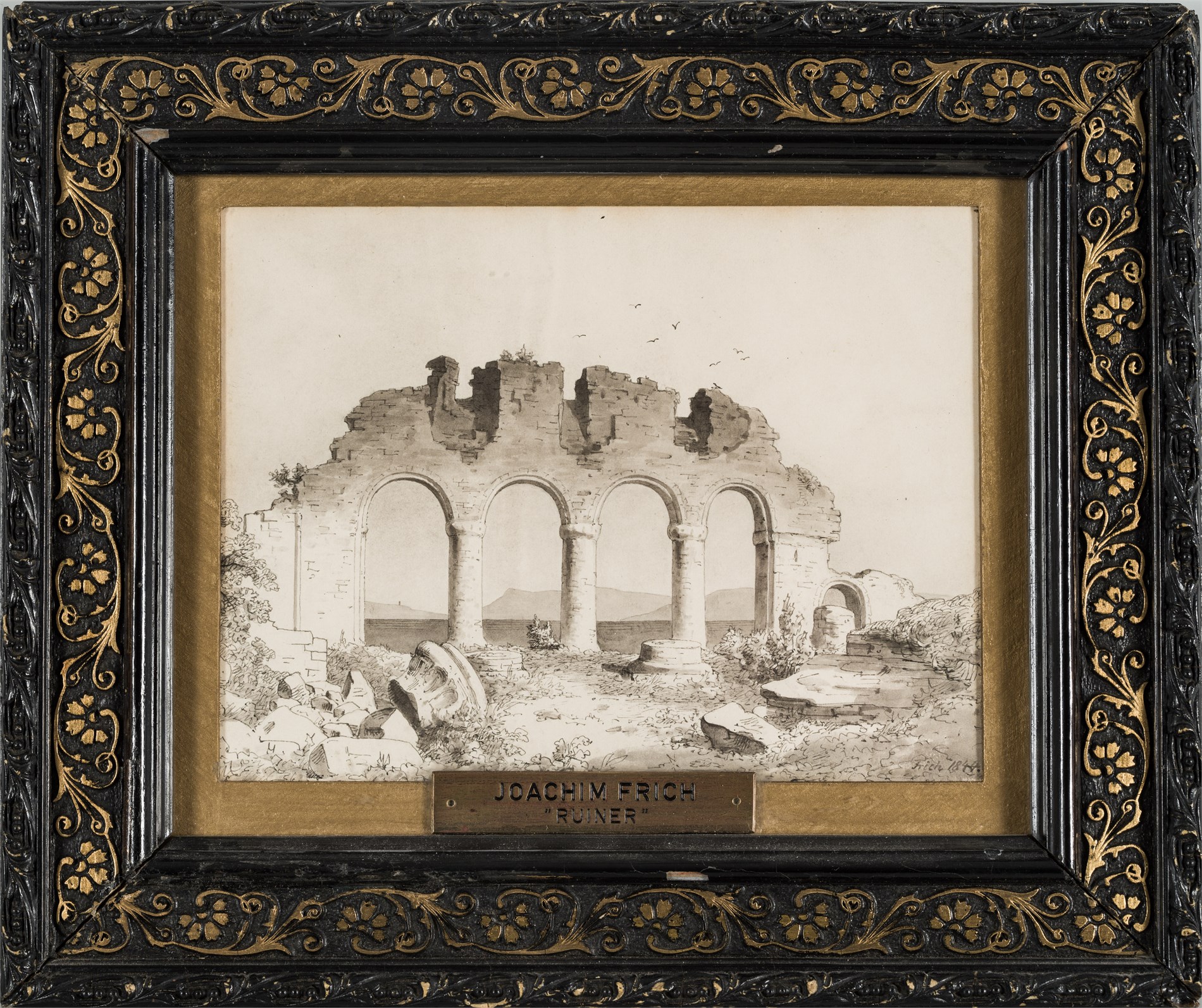Penn og lavering, 13,5 x 18 cm signert nede til høyre: Frich 1844