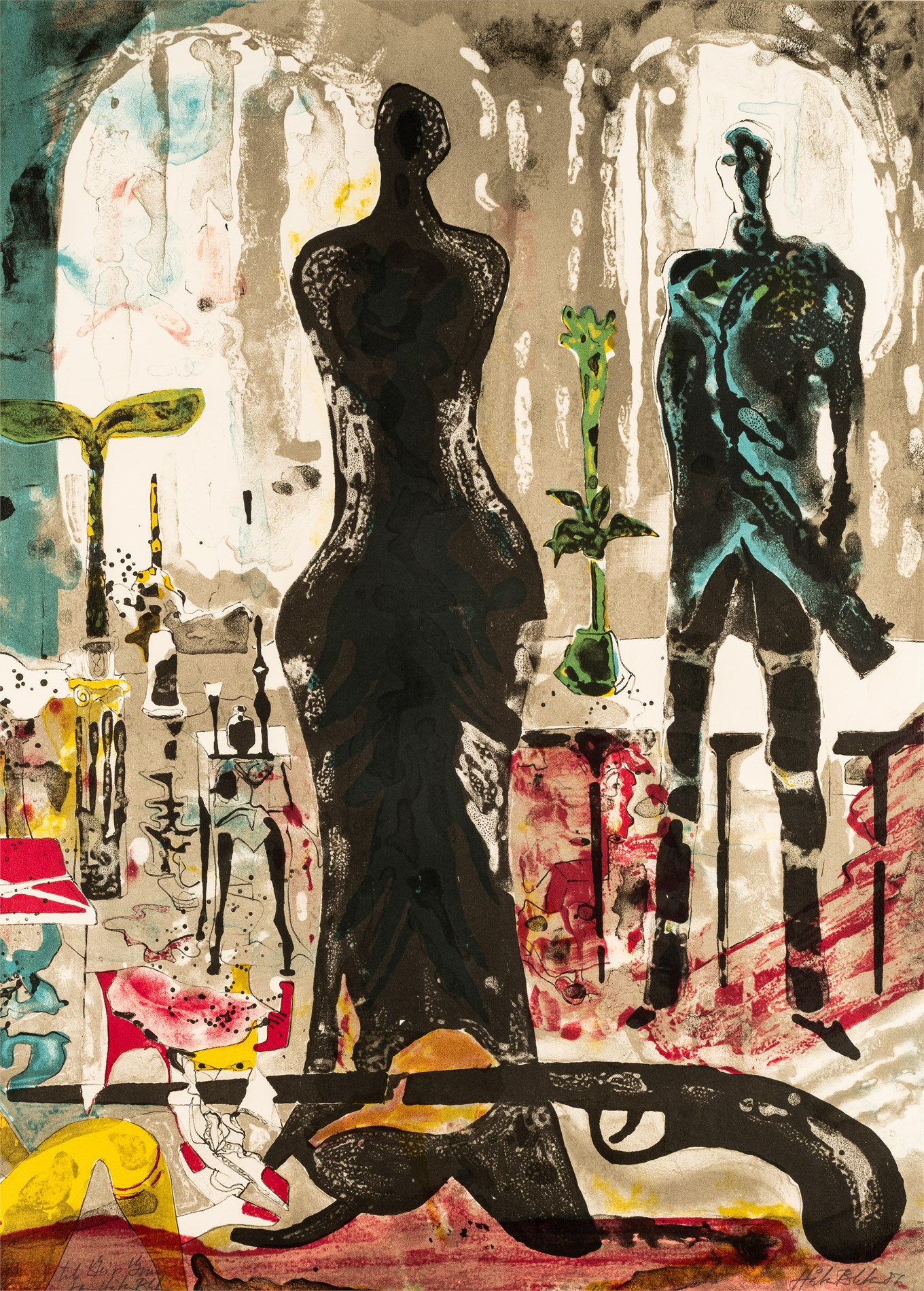 Litografi, 71 cm x 51 cm, Signert nede til høyre