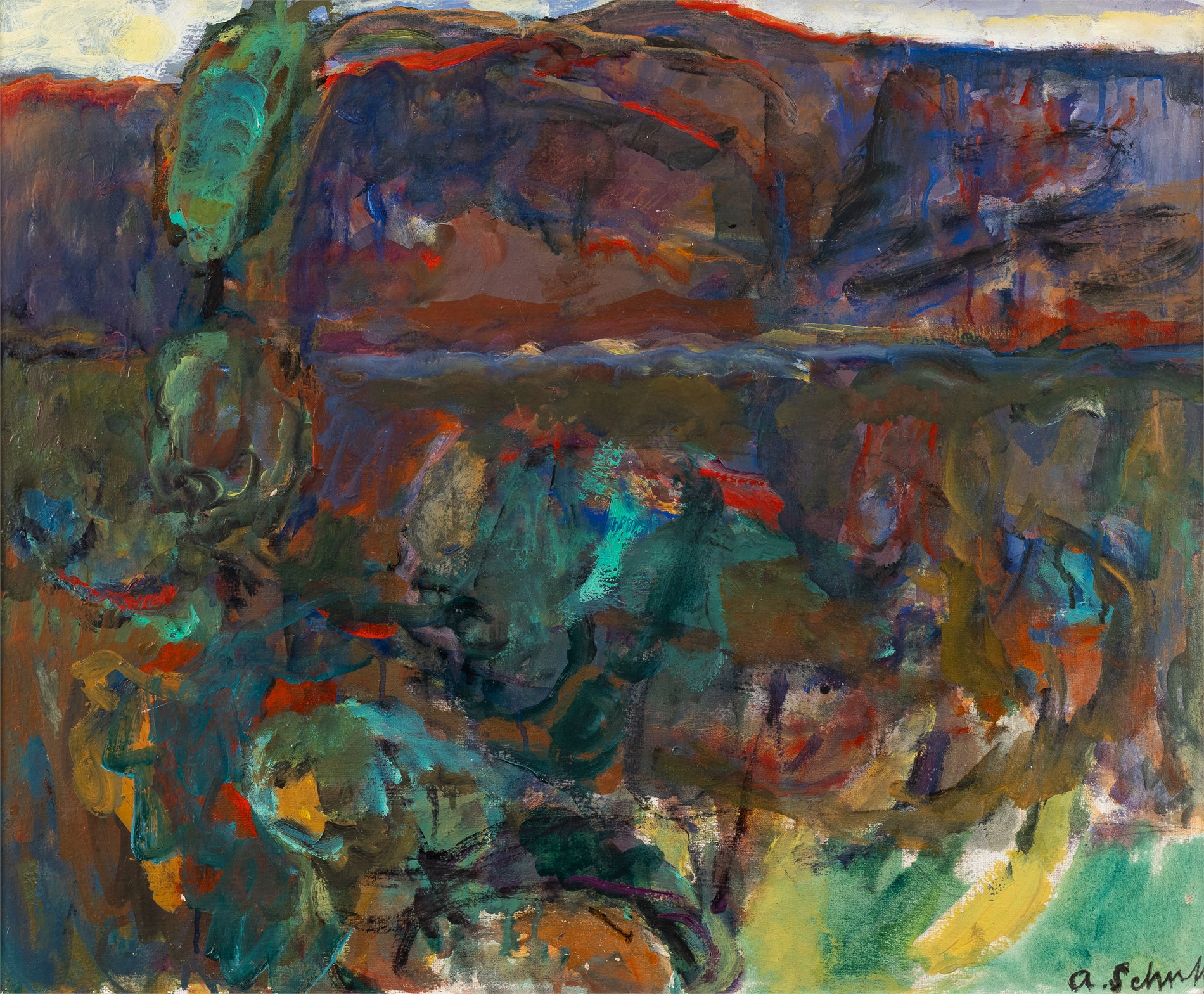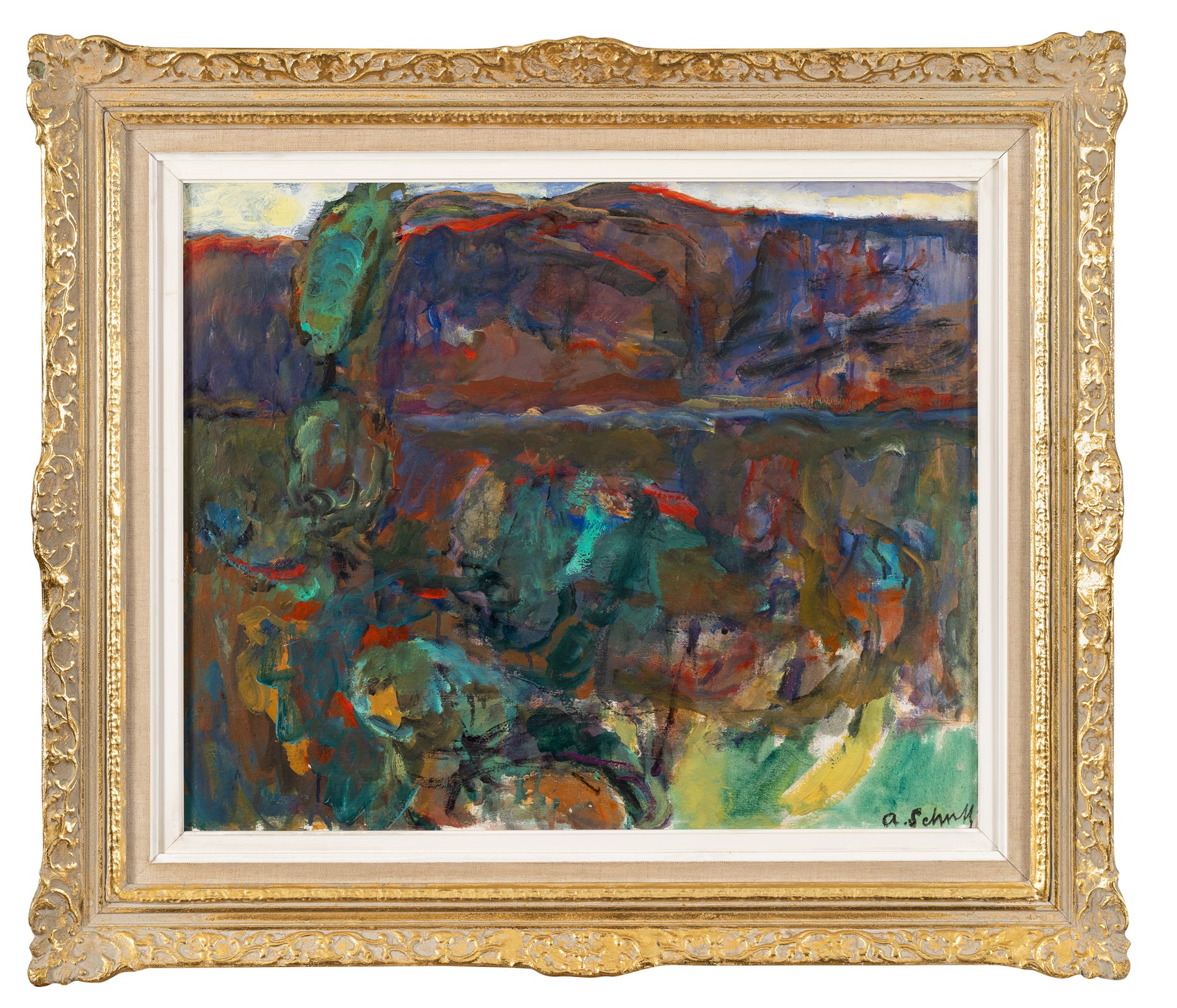 Olje på lerret, 50 x 61 cm, signert nede til høyre: A. Schultz