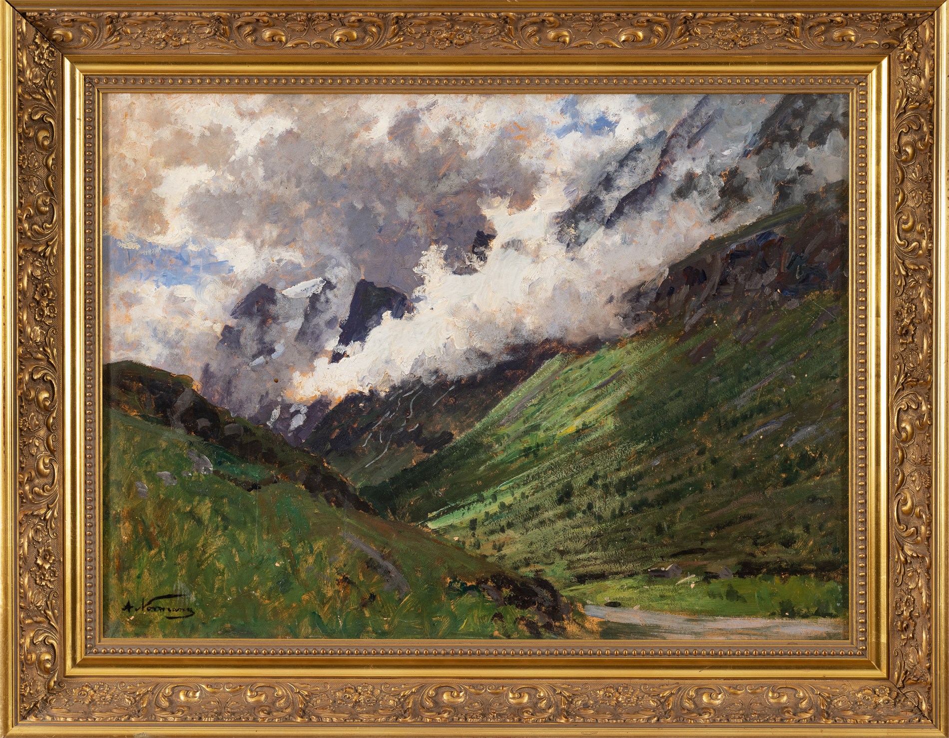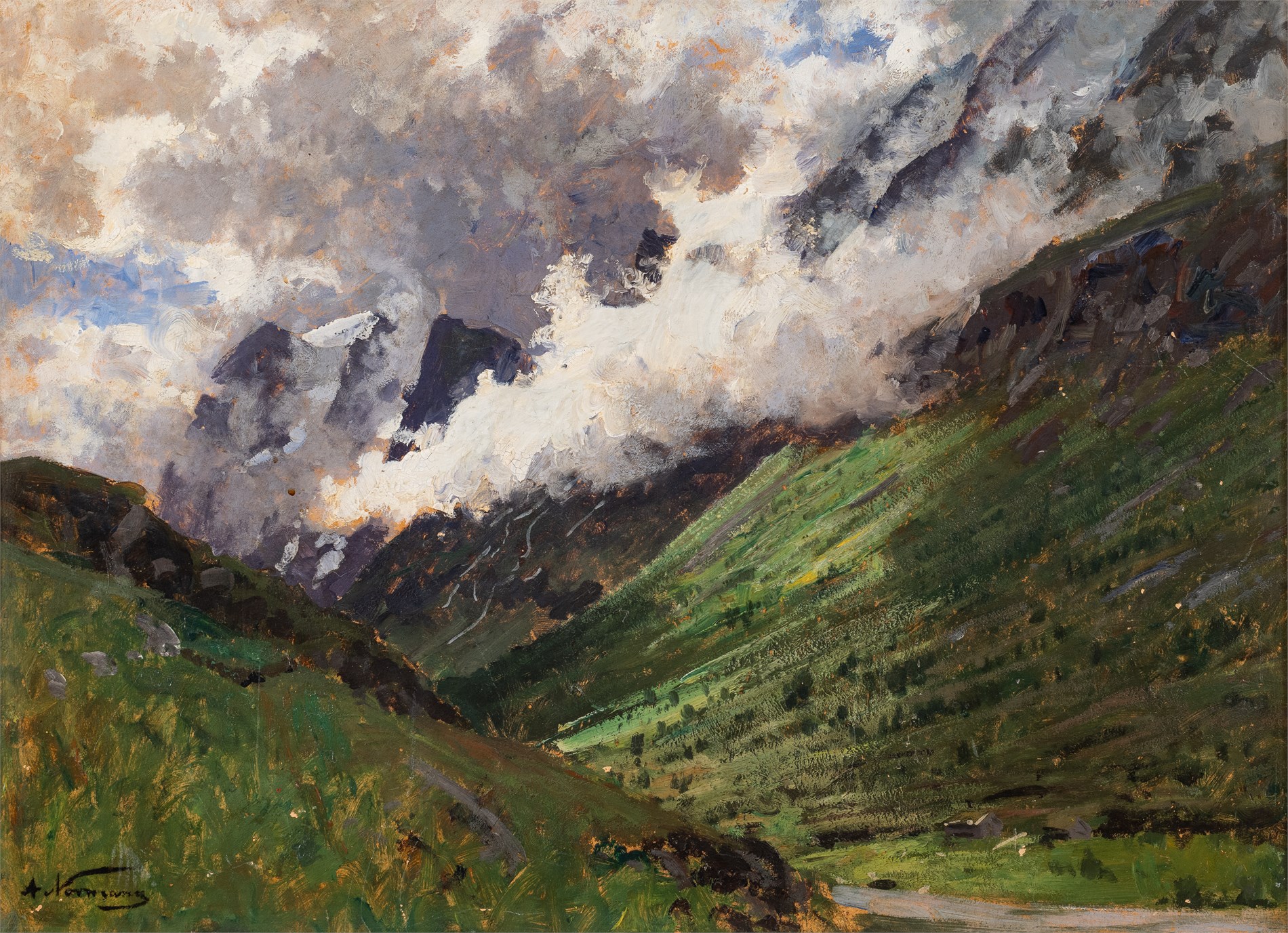 Olje på papir oppklebet på plate, 48 x 66 cm, Signert nede til venstre: A Normann