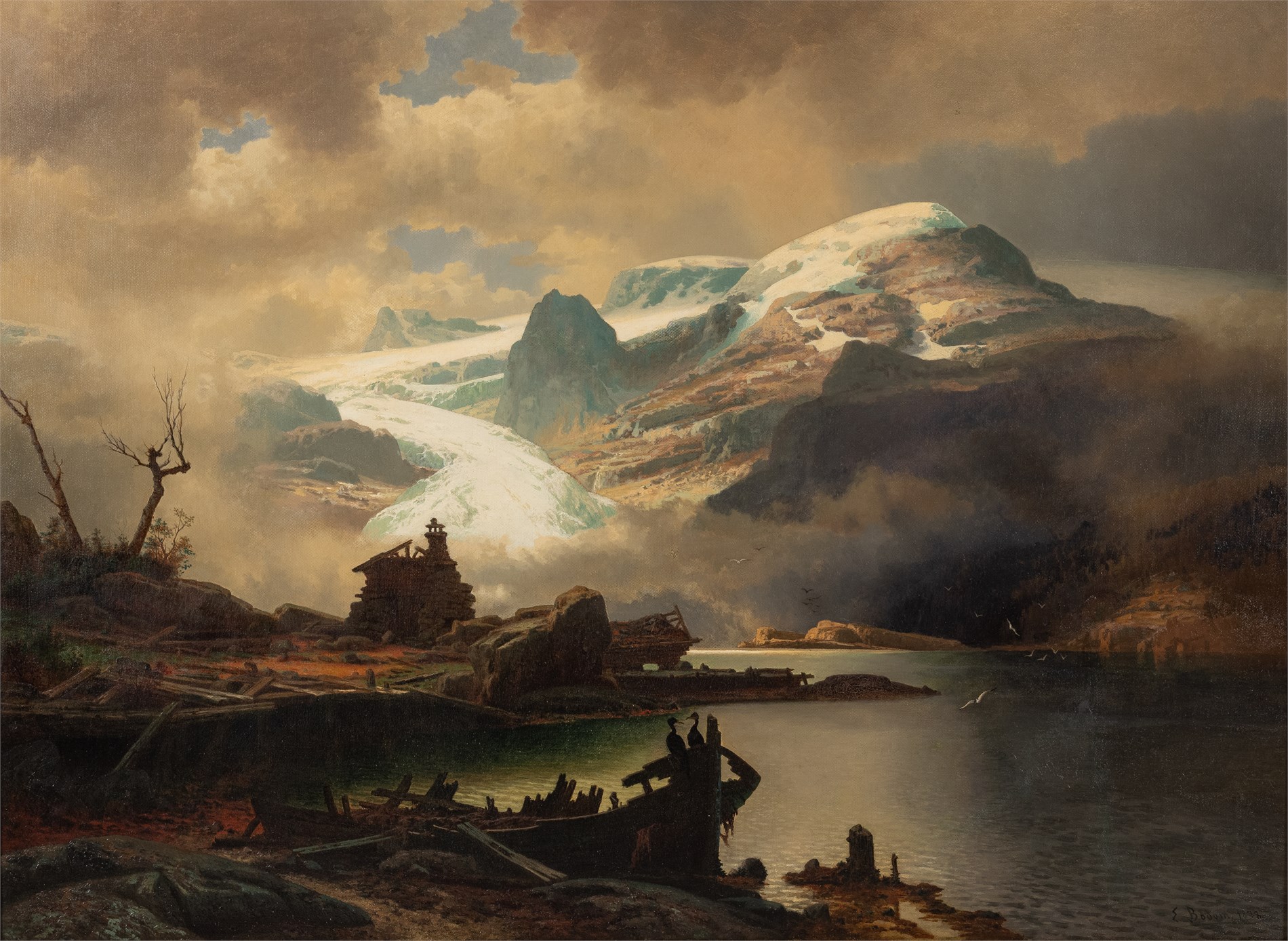 Olje på lerret, 115 x 159 cm, signert nede til høyre: E Bodom. 1878