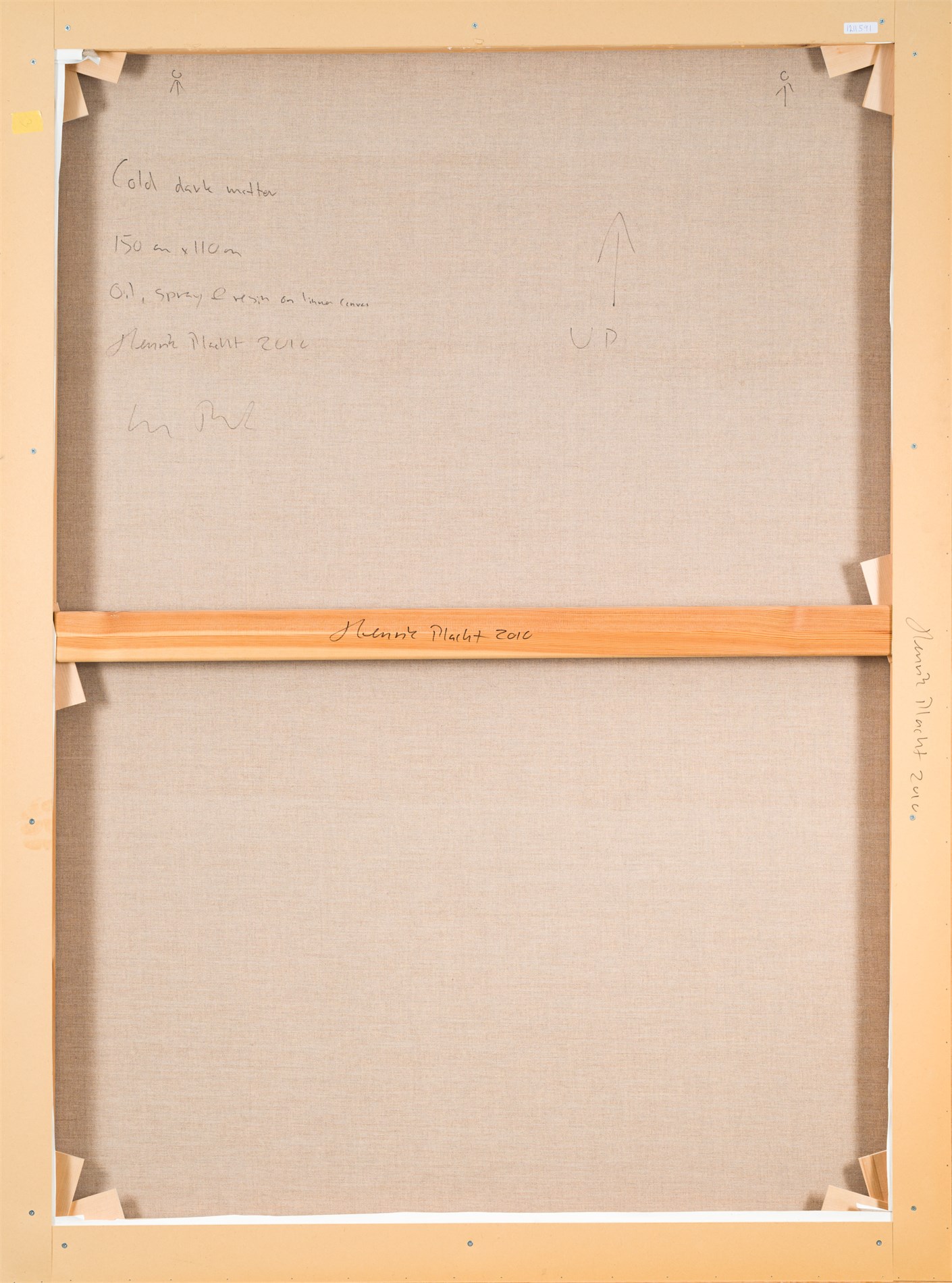 Olje, spray og harpiks på lerret, 115 x 110 cm, Signert bak: Henrik Placht