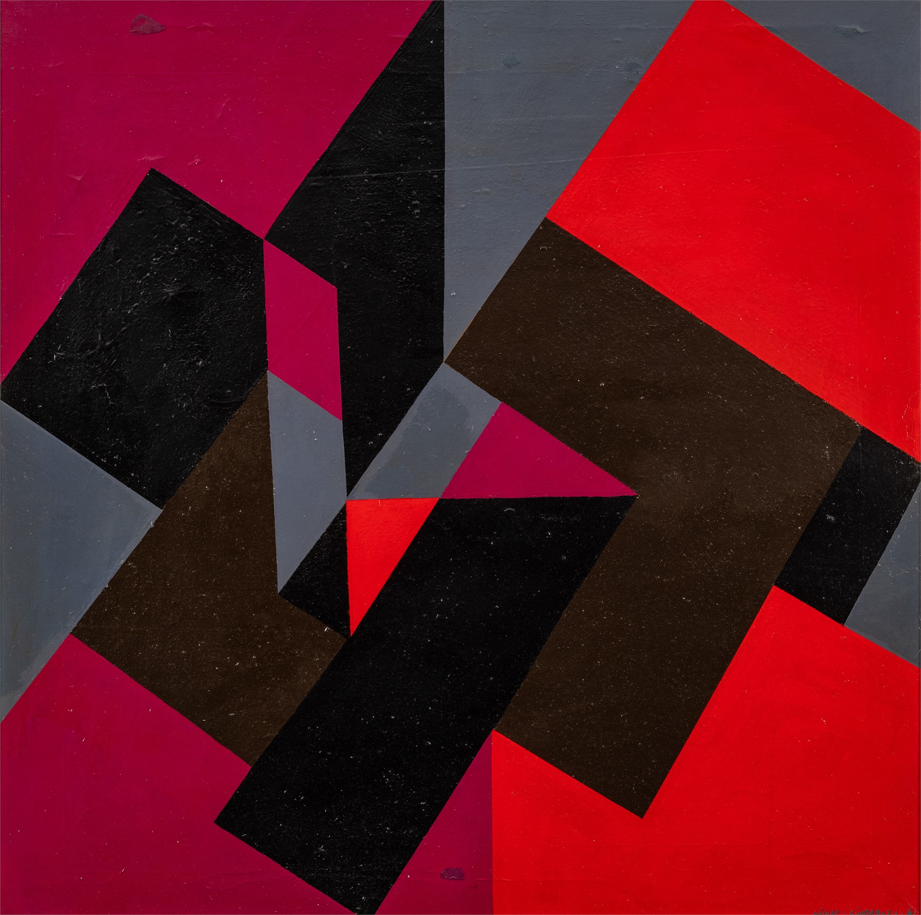 Akryl og olje på lerret, 101 x 101 cm, Signert nede til høyre: Gunnar S. Gundersen 61.