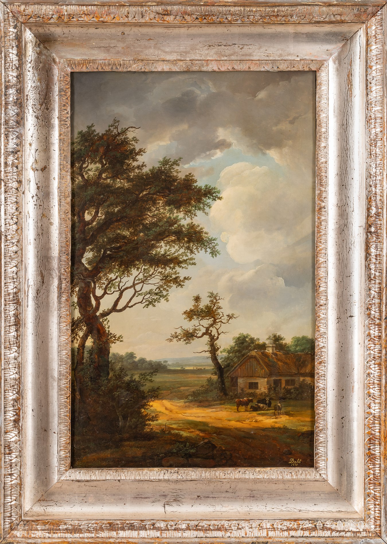 Olje på metallplate, 60 x 38 cm, Sekundaær (falsk) signatur nede til høyre: Dahl 1821