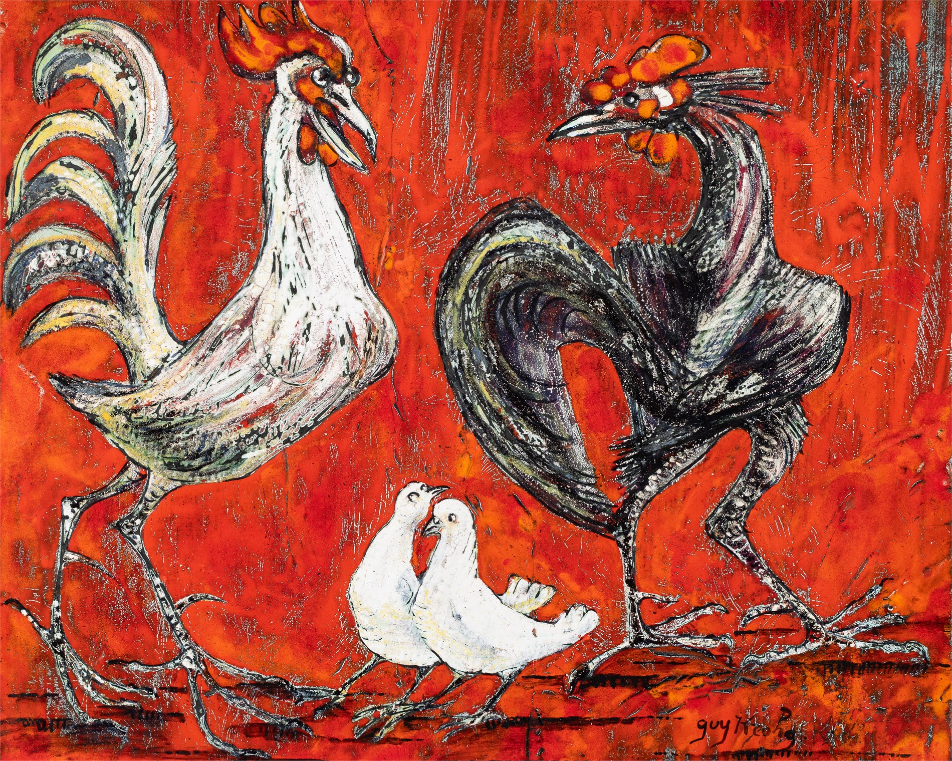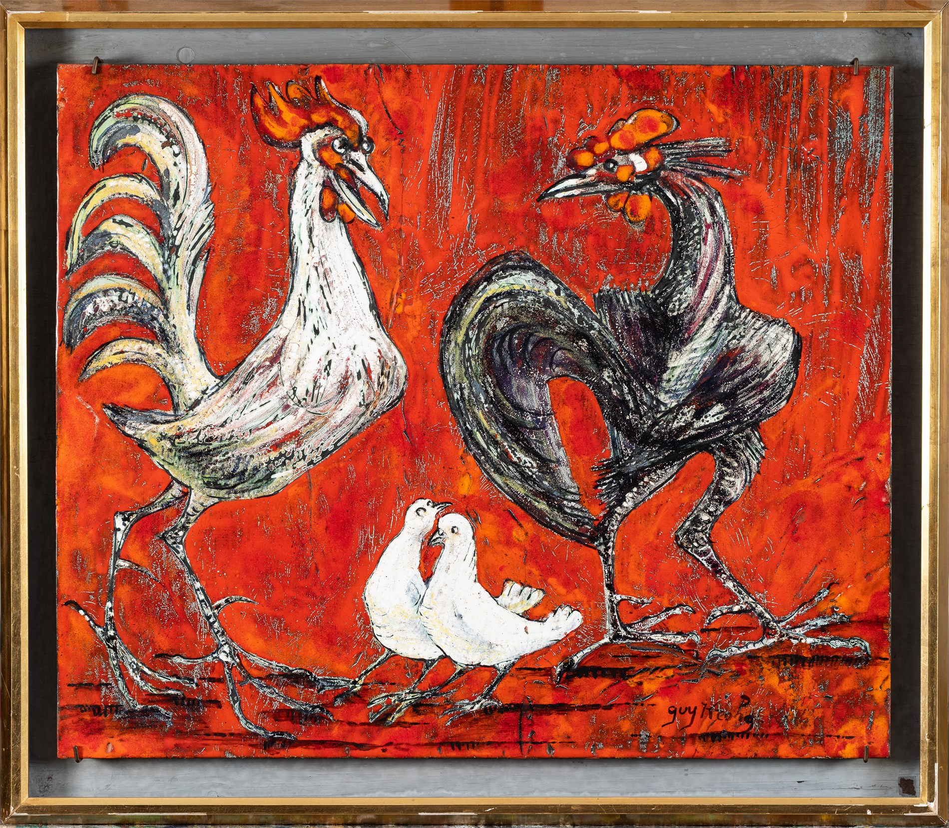 Emalje på metallplate, 61 x 51 cm, signert nede til høyre