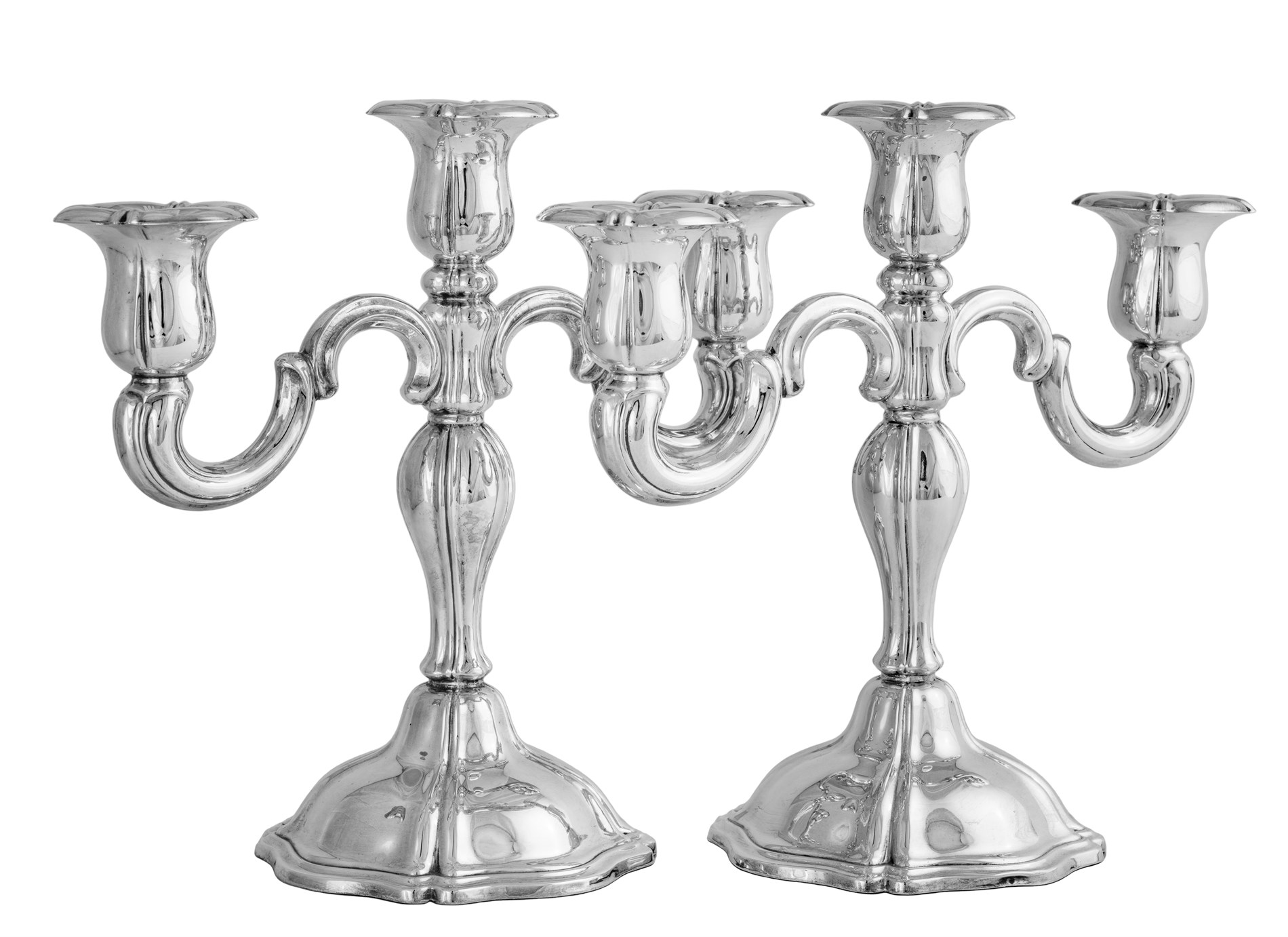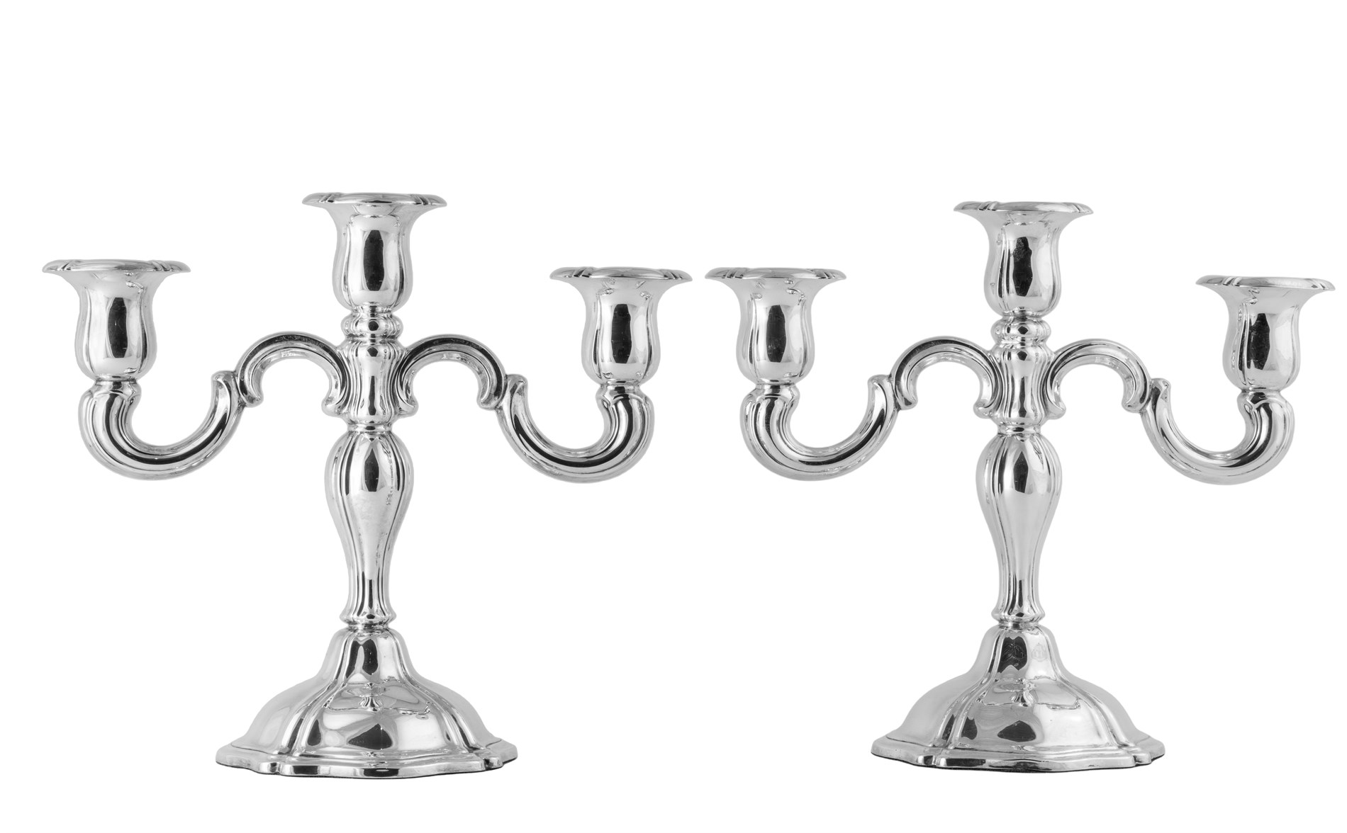 Et par kandelabre med tre lyspiper, sølv 830s 24 cm