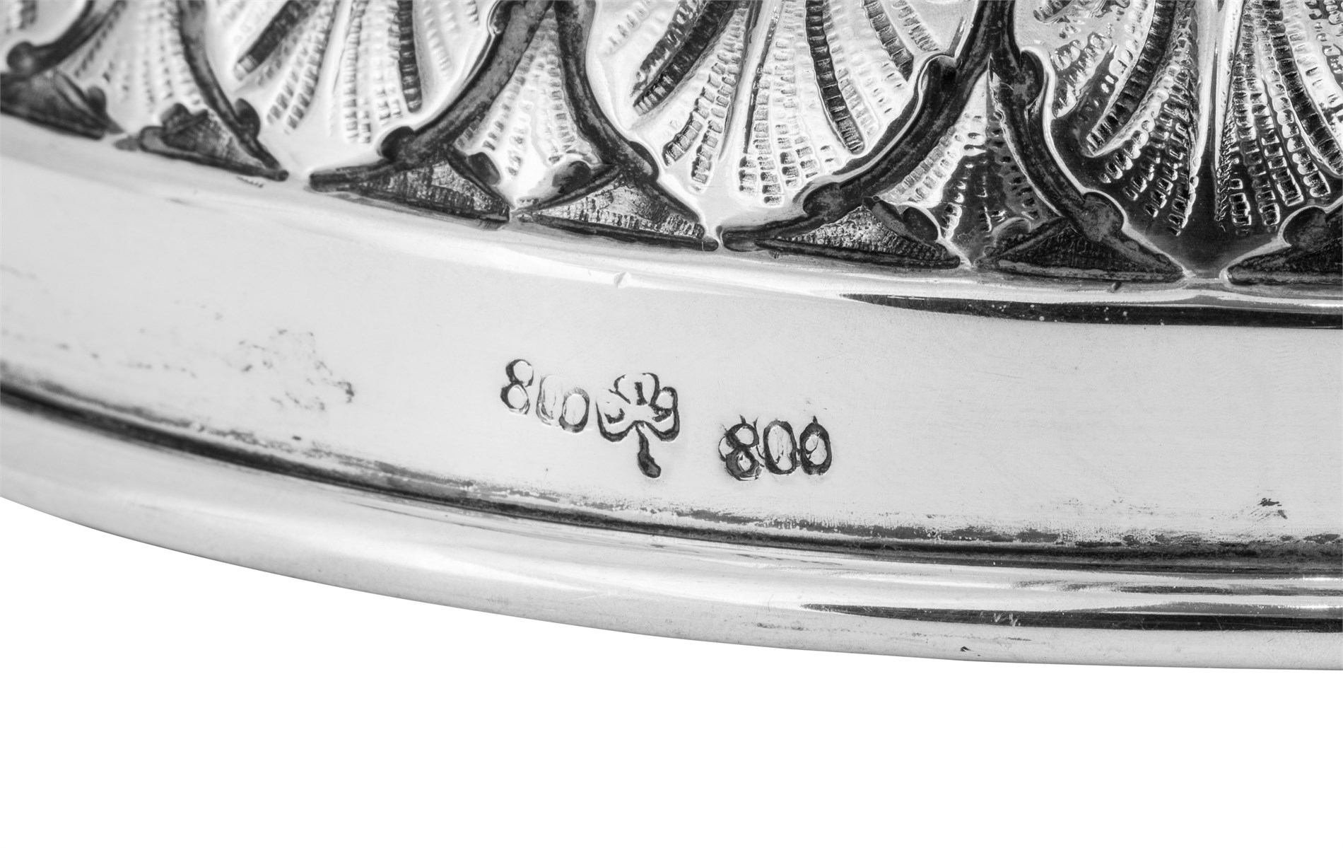 Stor pokal i sølv 830s med hanker 912 gram 31 x 36,5 cm