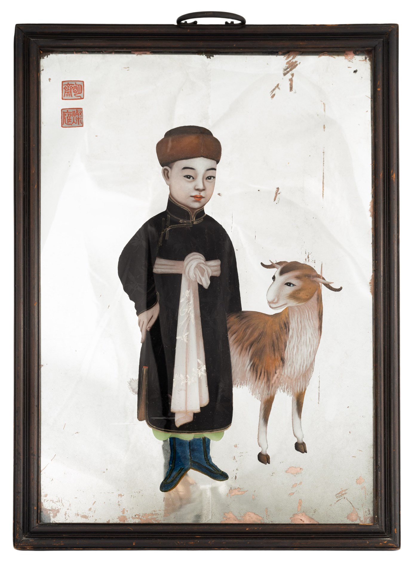 Underglassmaleri, 50 x 34,5 cm, Sen Qing-dynasti