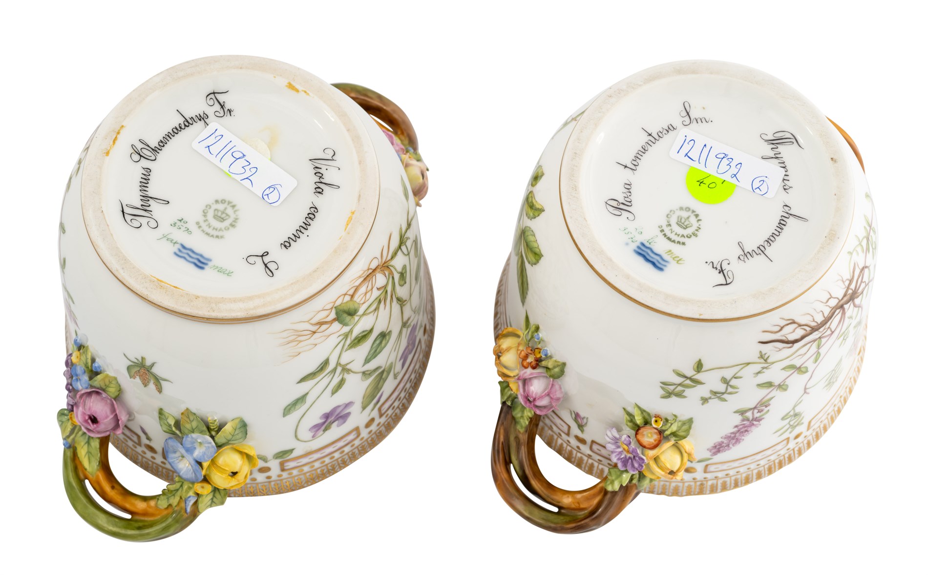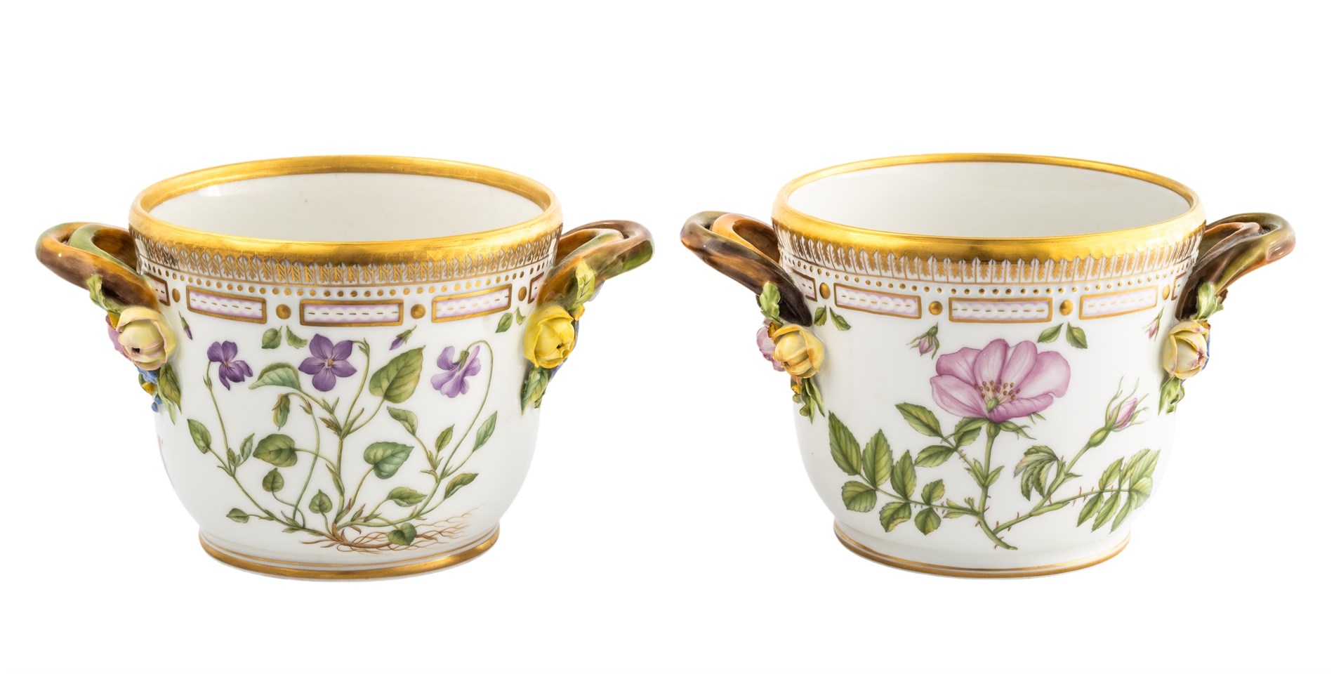 Royal Copenhagen, håndmalt og gullstafert porselen, høyde 12,3, bredde 21 cm. Blomstermotiver. 20/3570