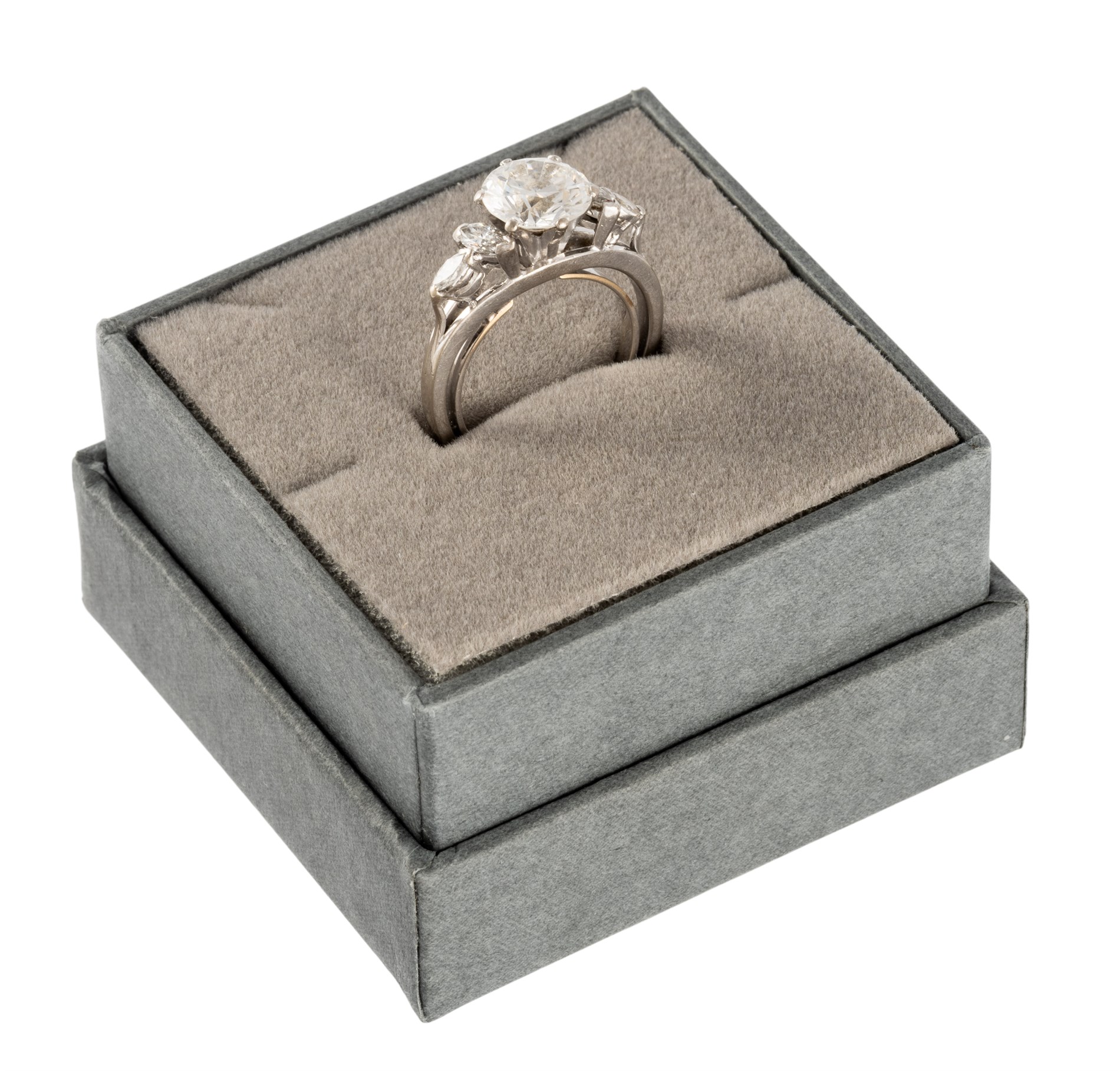 Diamantring med sidestener 0.35 ct, 18K Hvitt gull, Str 49-53