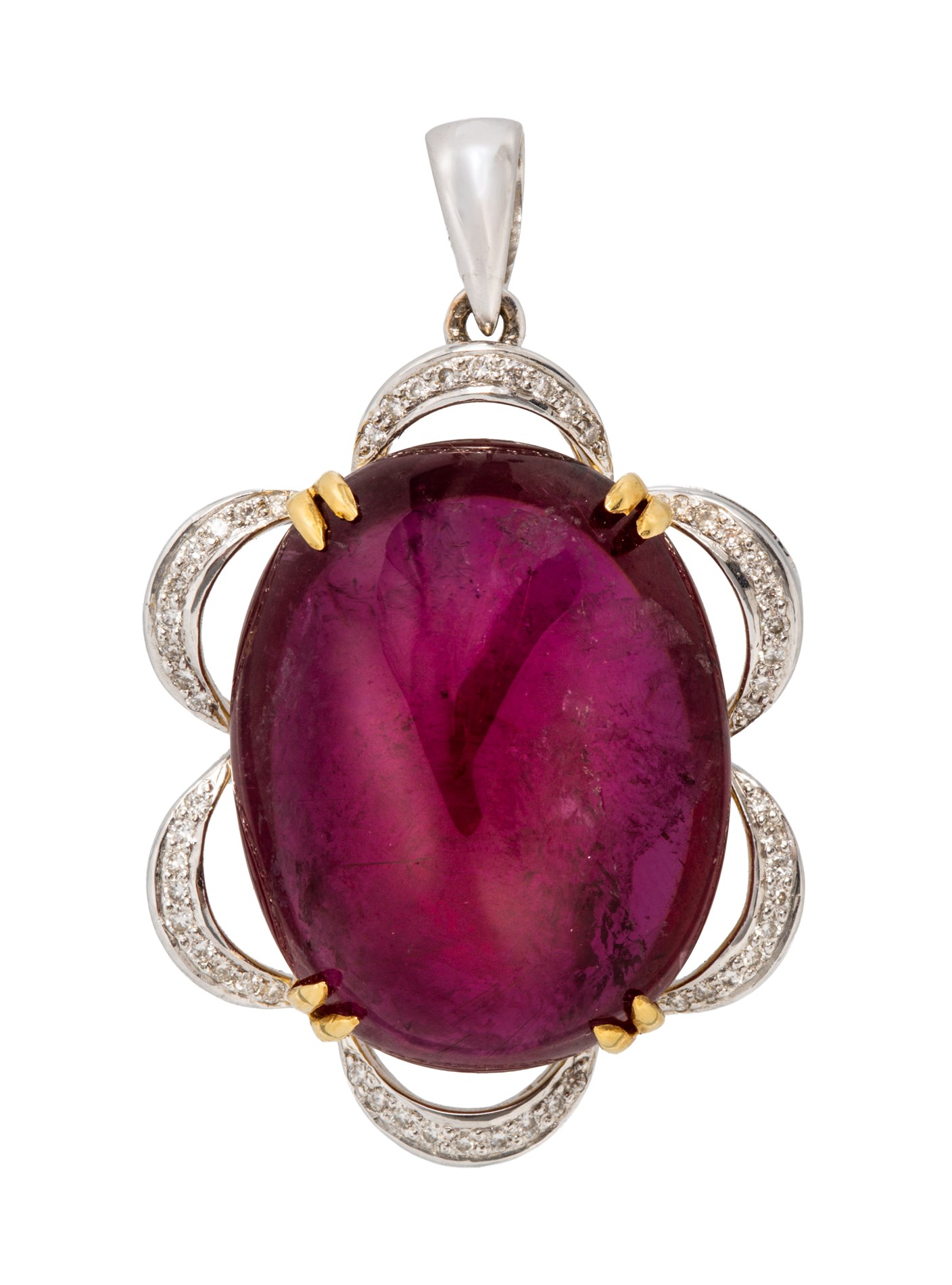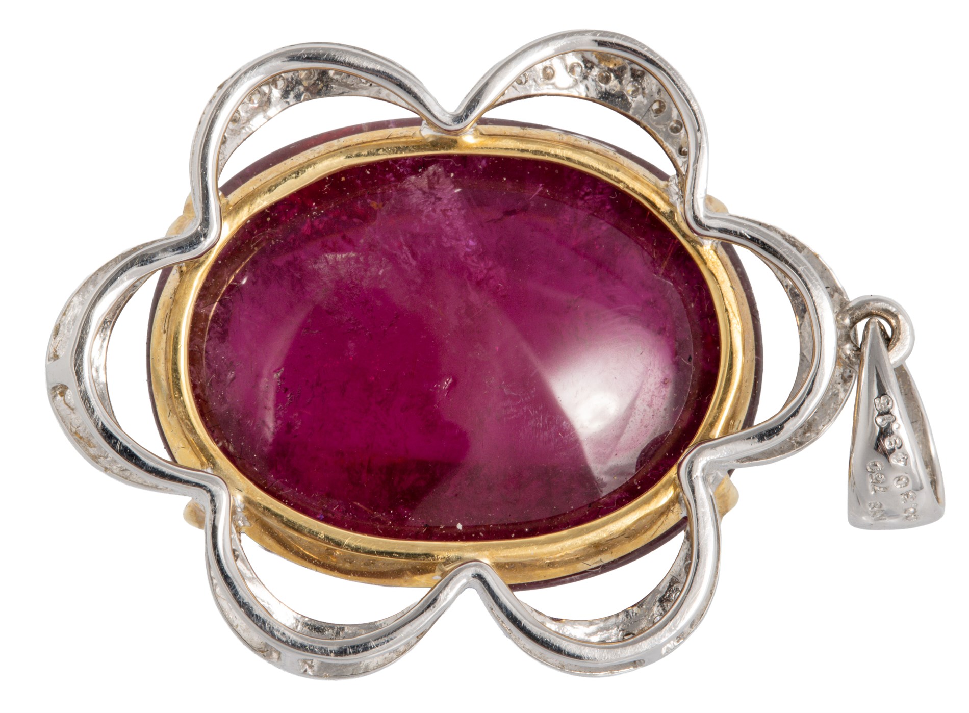 Spinell anheng med diamanter, 18K hvitt og gult gull