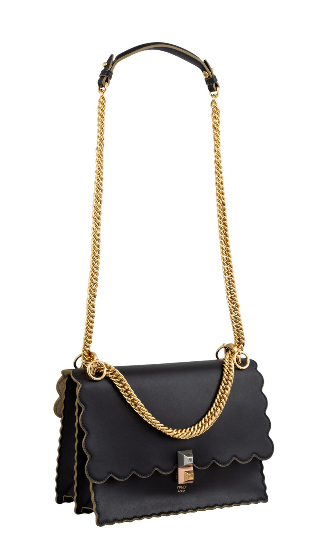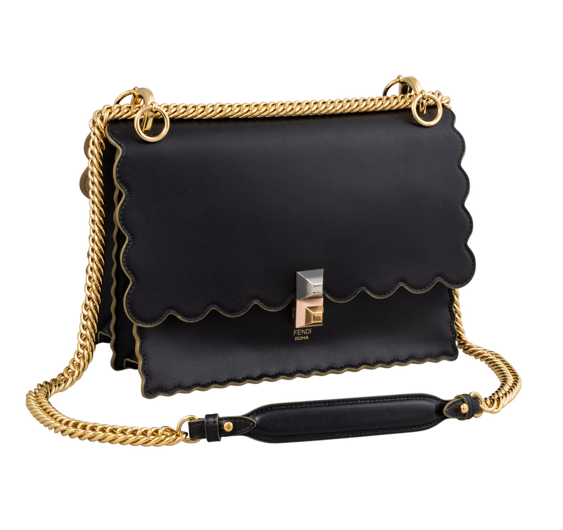 Modell i sort skinn med bølget kant. Dustbag medfølger.