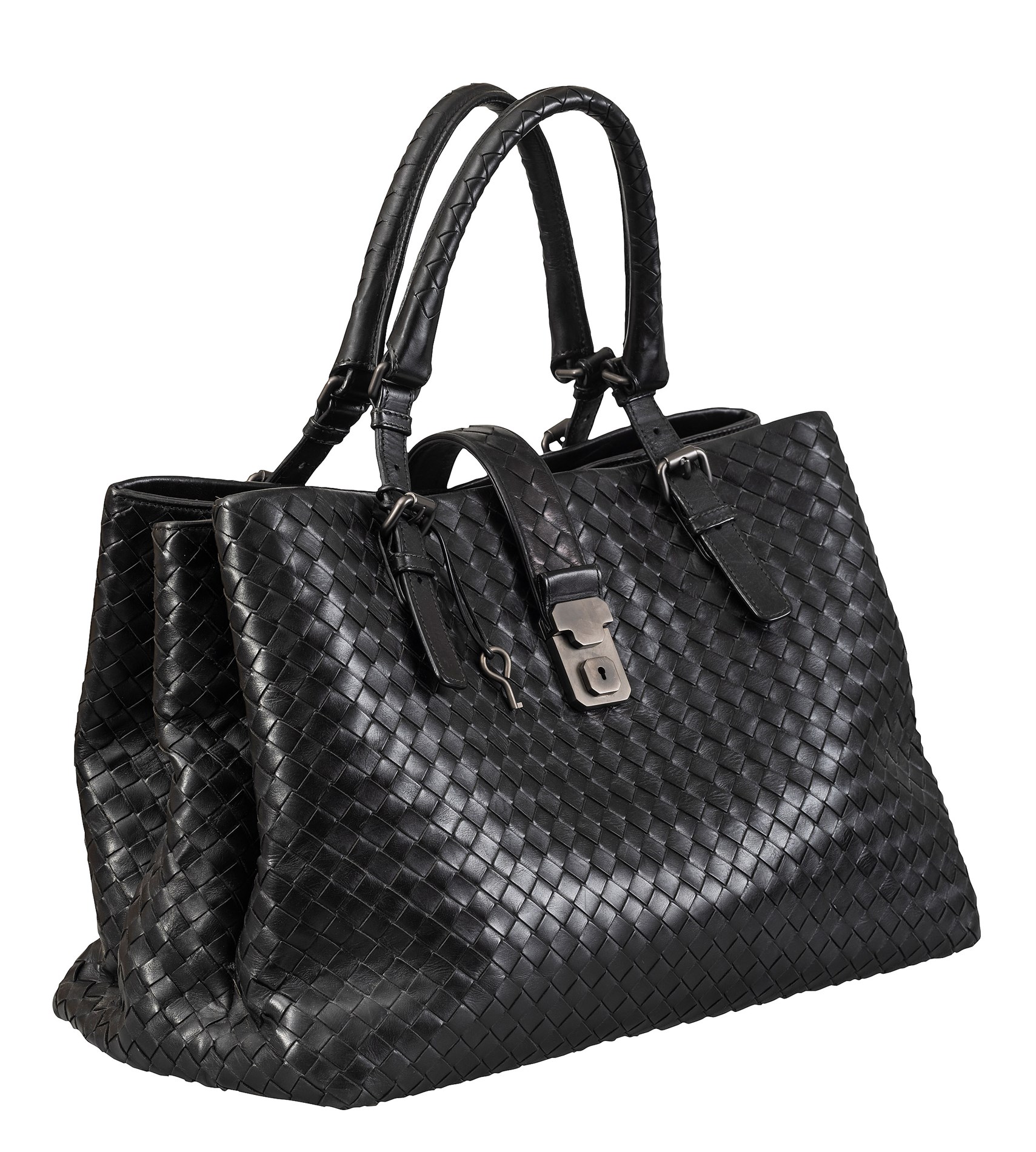 Modell i sort lær med gun metal hardware. Serienummer: B00851586H. Medfølger støvpose.