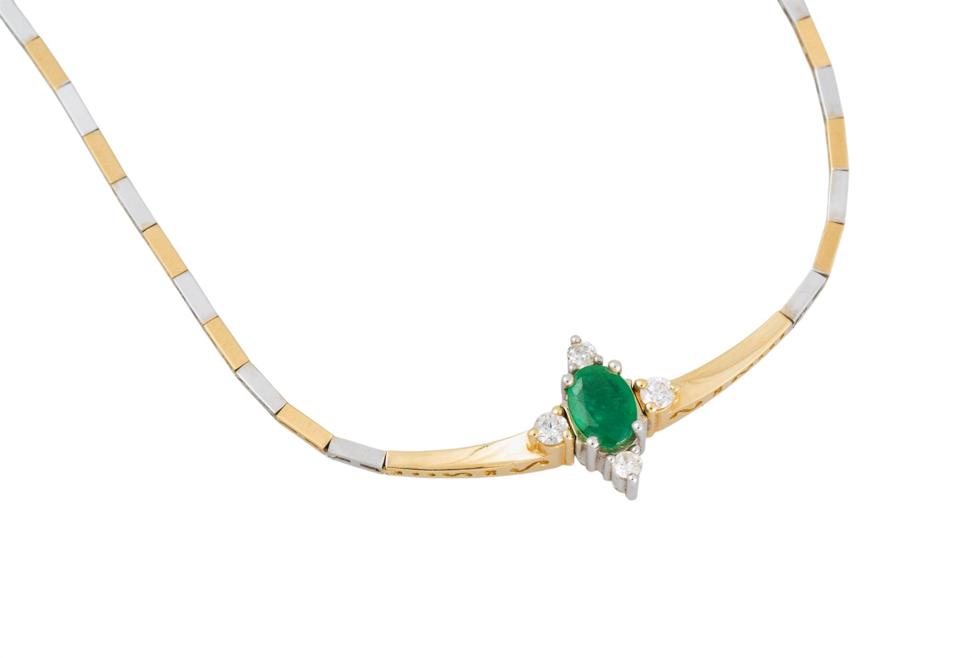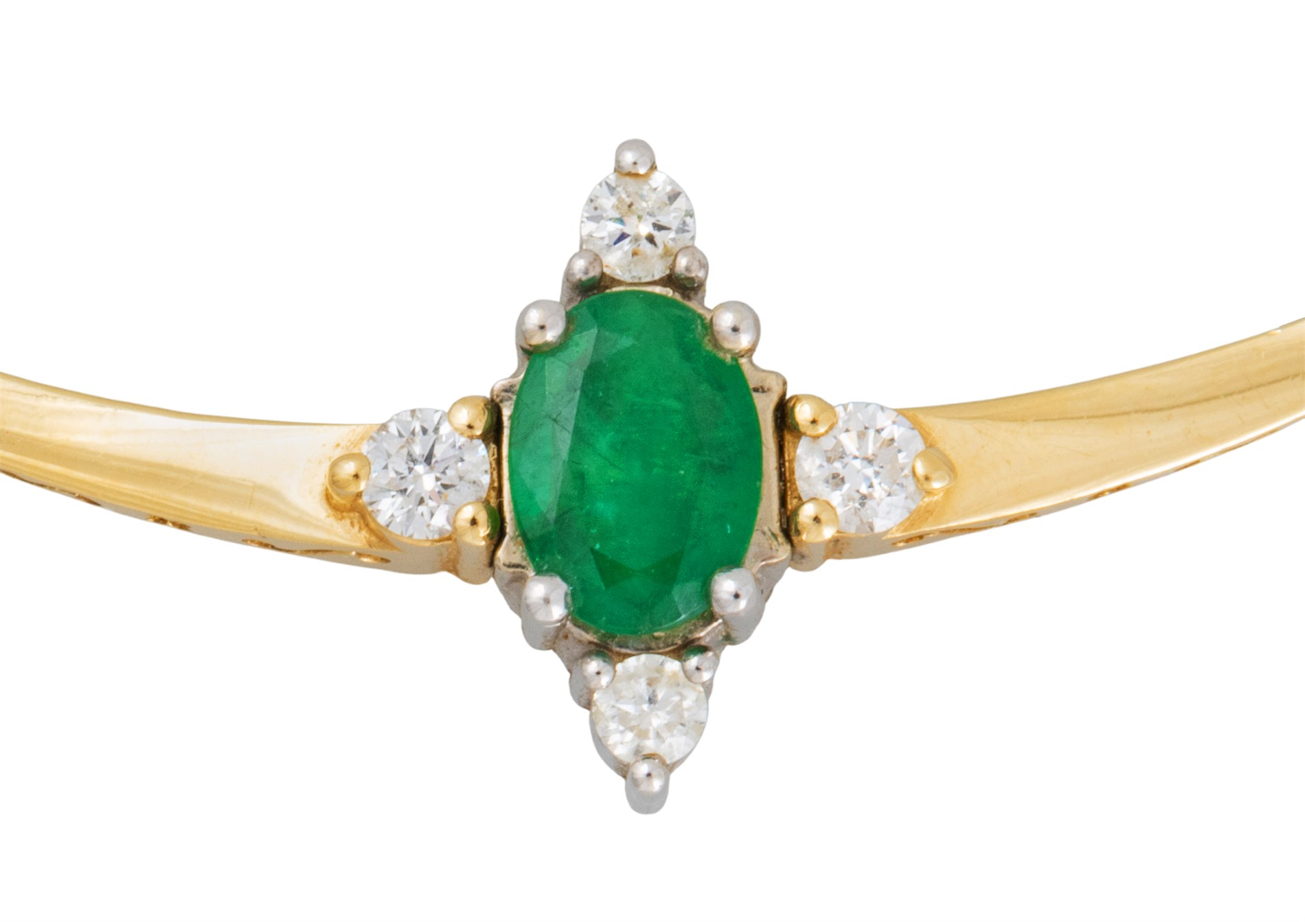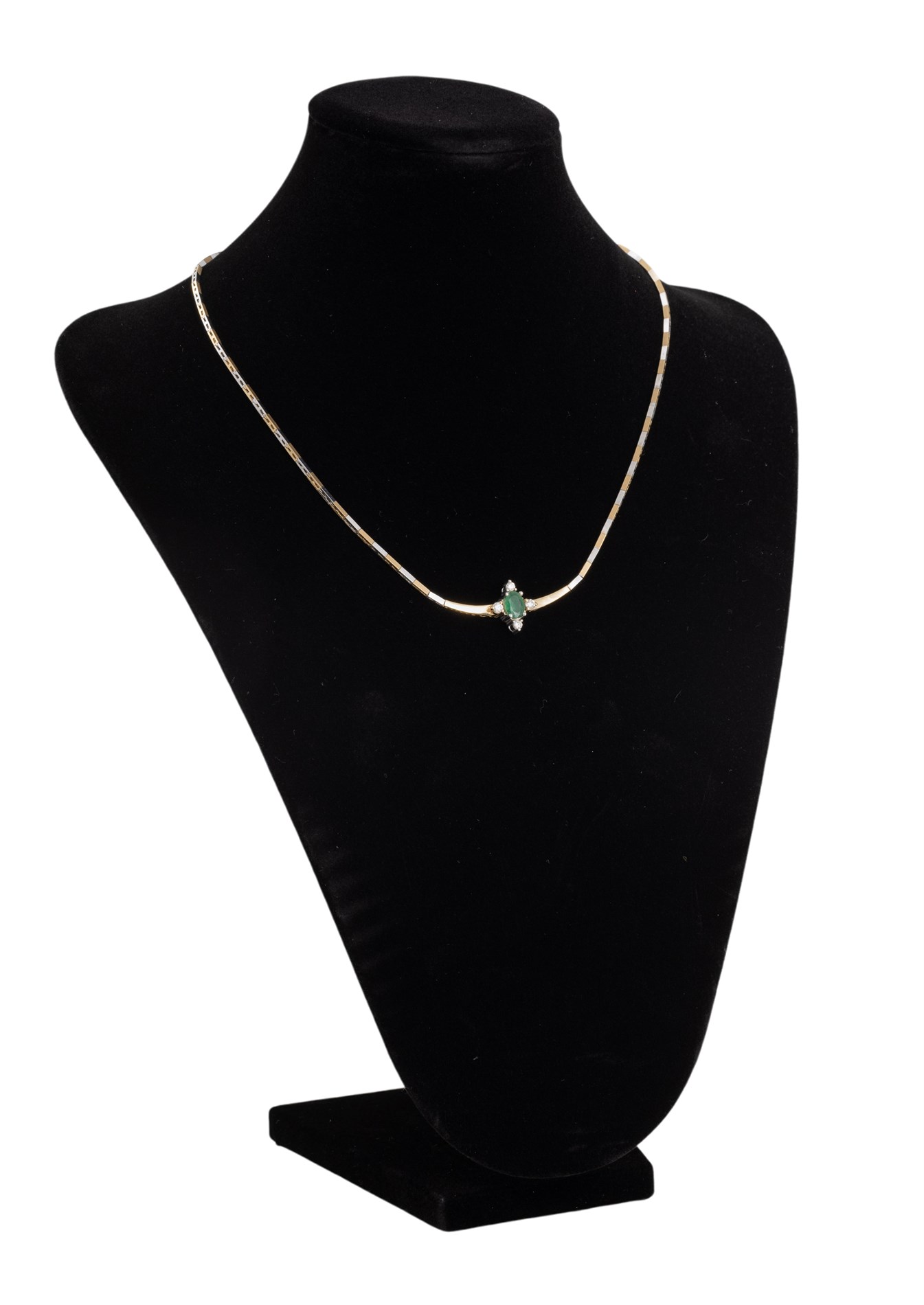 Side 1 av anheng; 1xSmaragd oval 0.89ct, 4 diamanter tot 0.30ct, Kvalitet W/SI