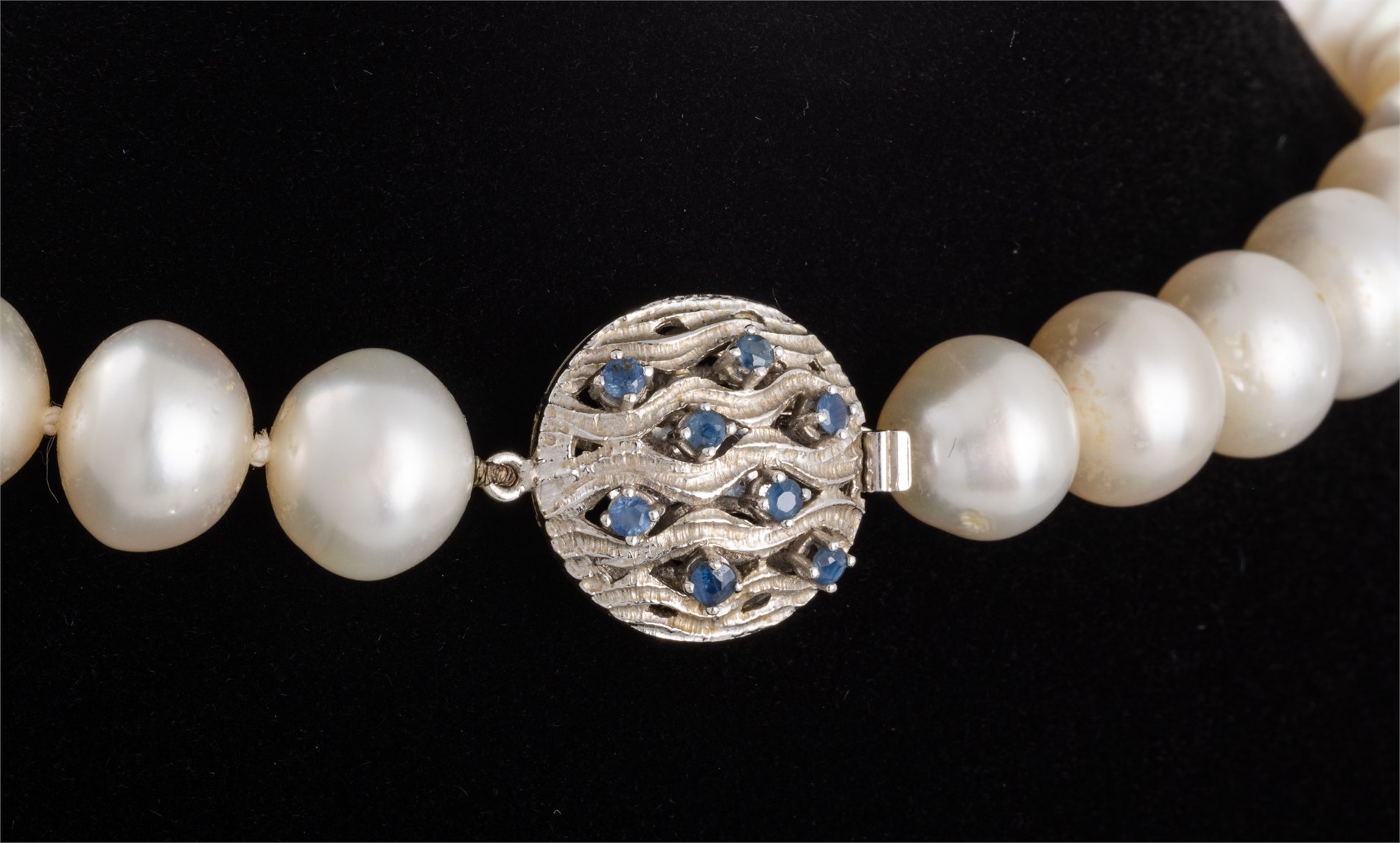 Barrock Perlecollier med gull og safir lås Kultiverte perler