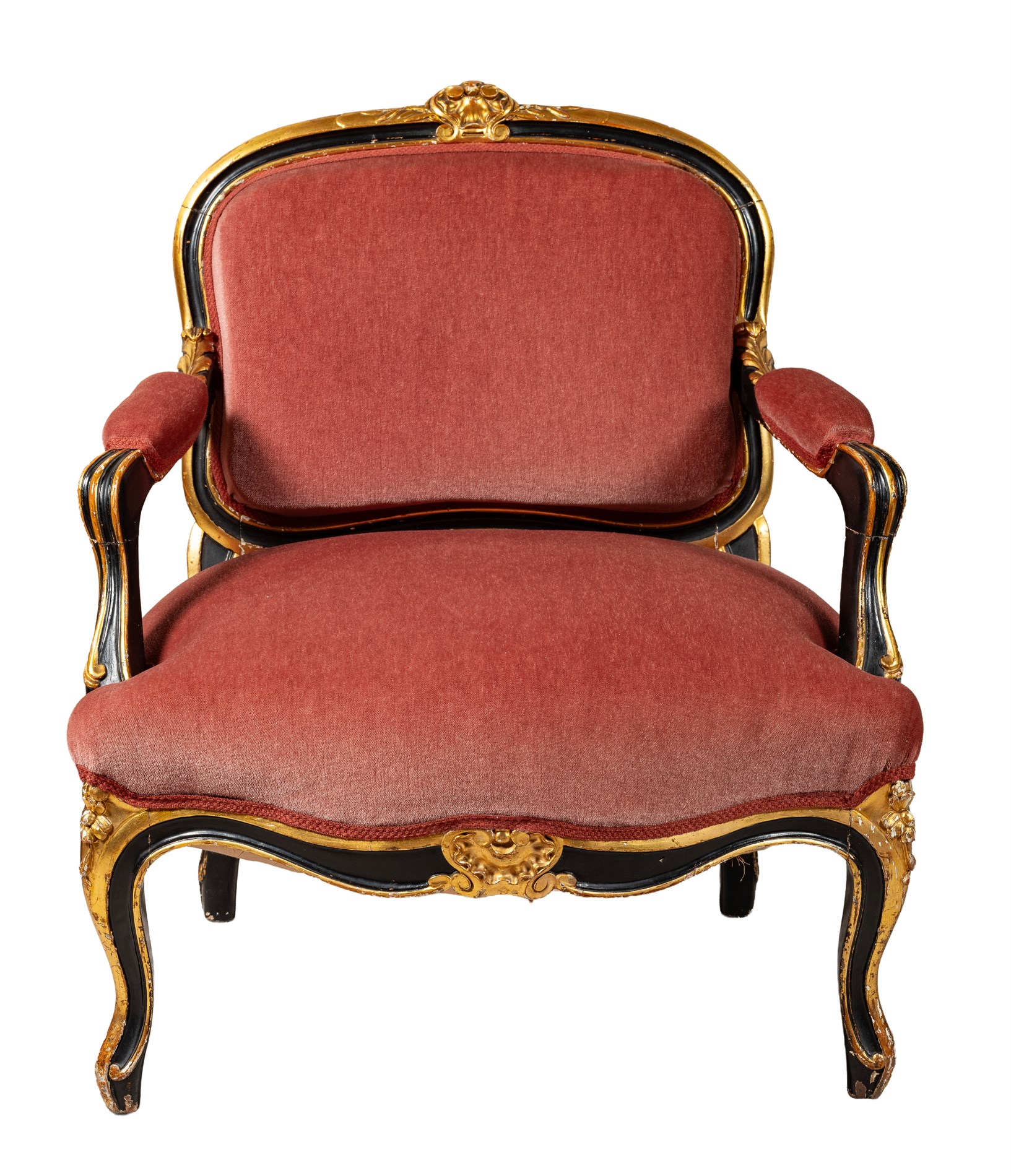 Sekundært malt og forgylt. Stopping og stoff i god stand.