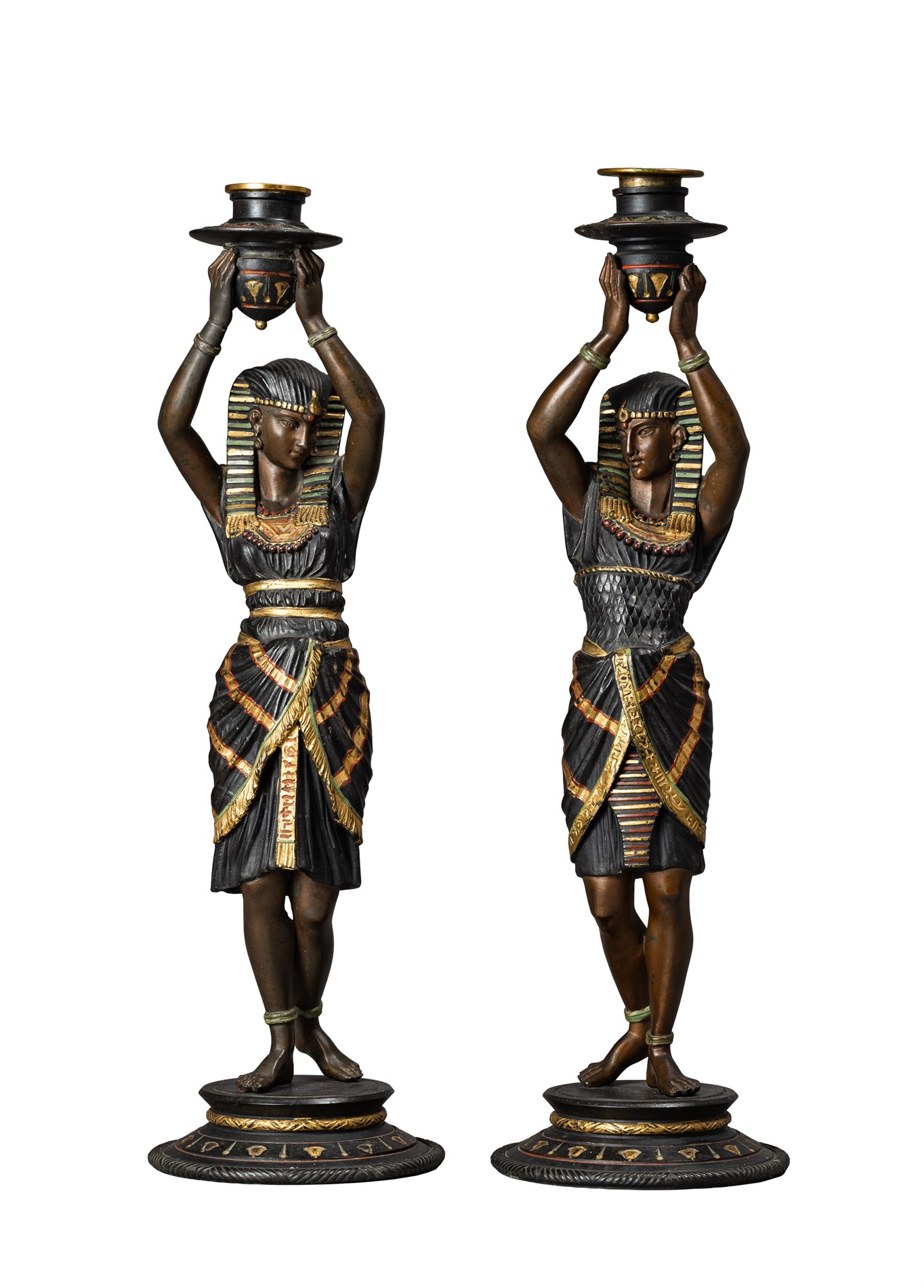Egyptiserende, 1900-tallet. Bemalt sink med forgylte detaljer.