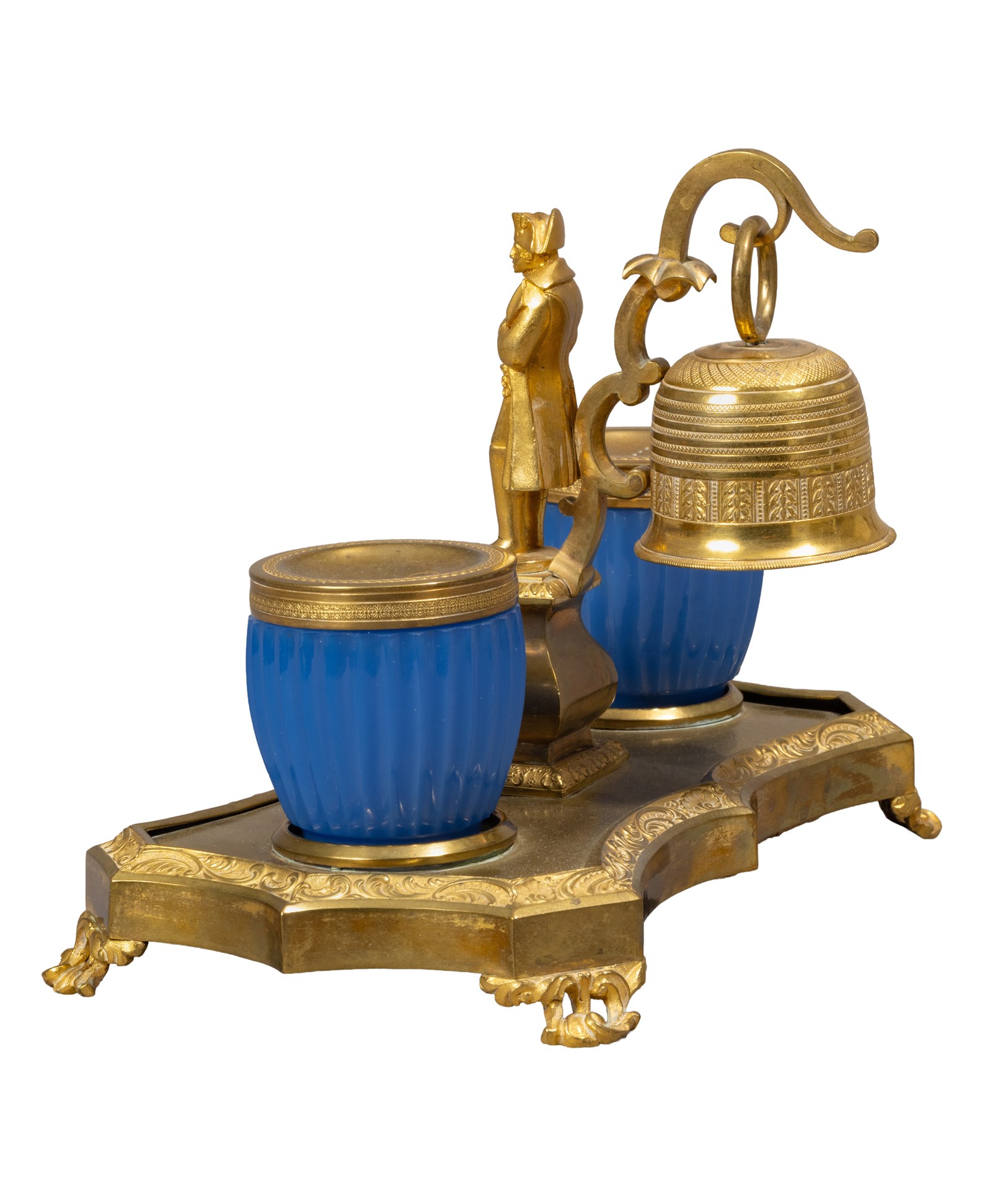 Empire. Brennforgylt bronse og lysblått opakt opalinglass.