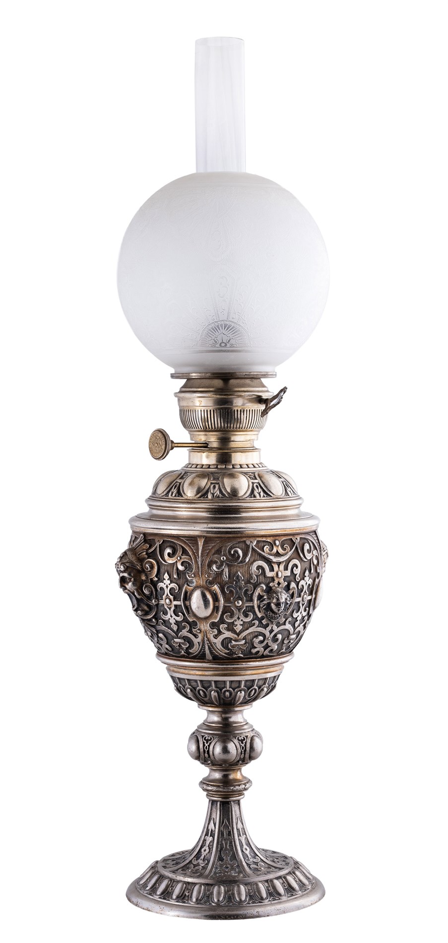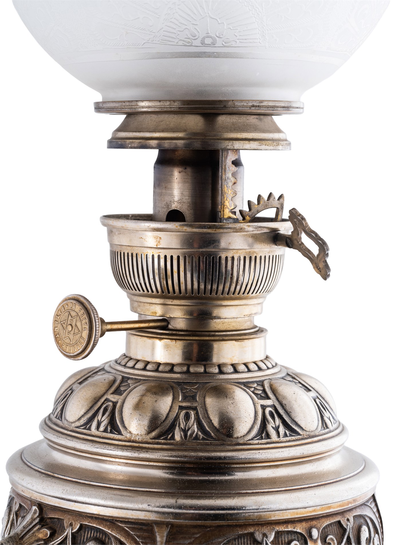 Frostet kuppel med etset dekor. Hev-senk funksjon. Sent 1800-tallet.