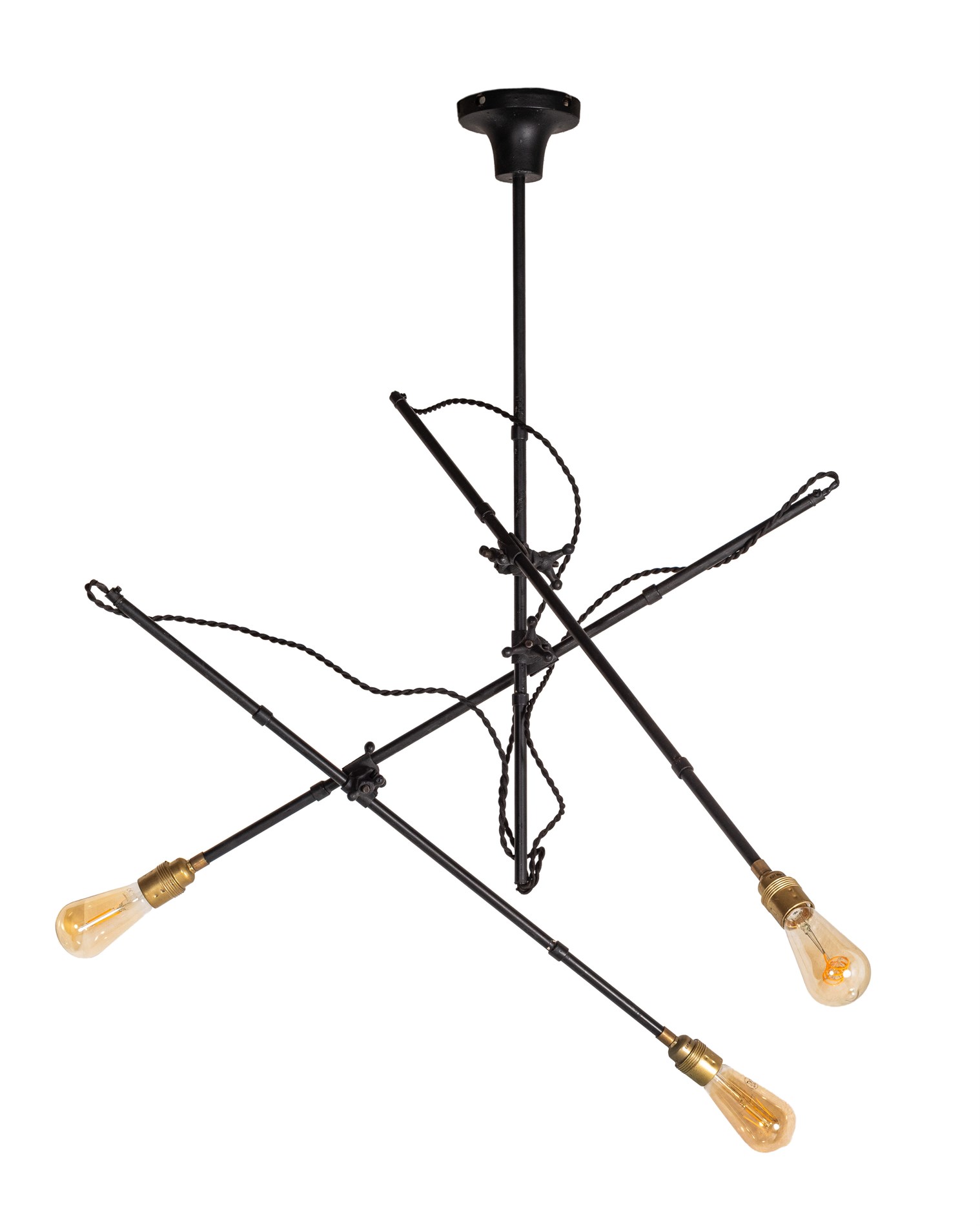 Taklampe med justerbare armer. Tre lyspunkter med messingdetaljer.