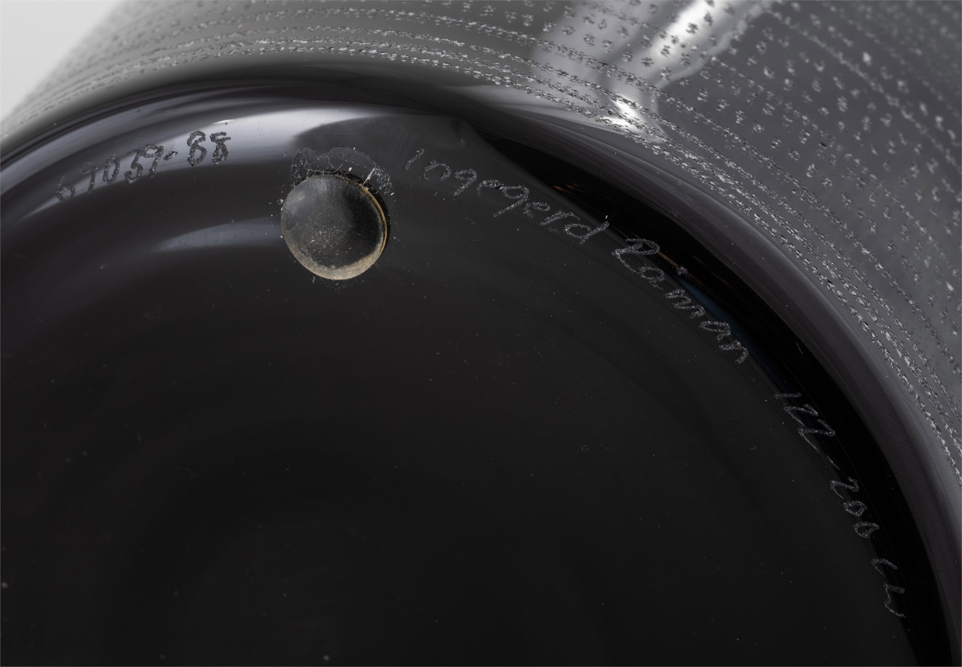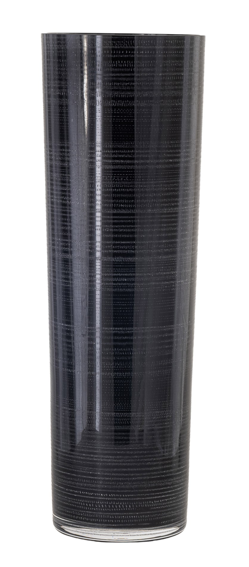 Sort glassvase, sylinderformet, munnblåst krystallglass.