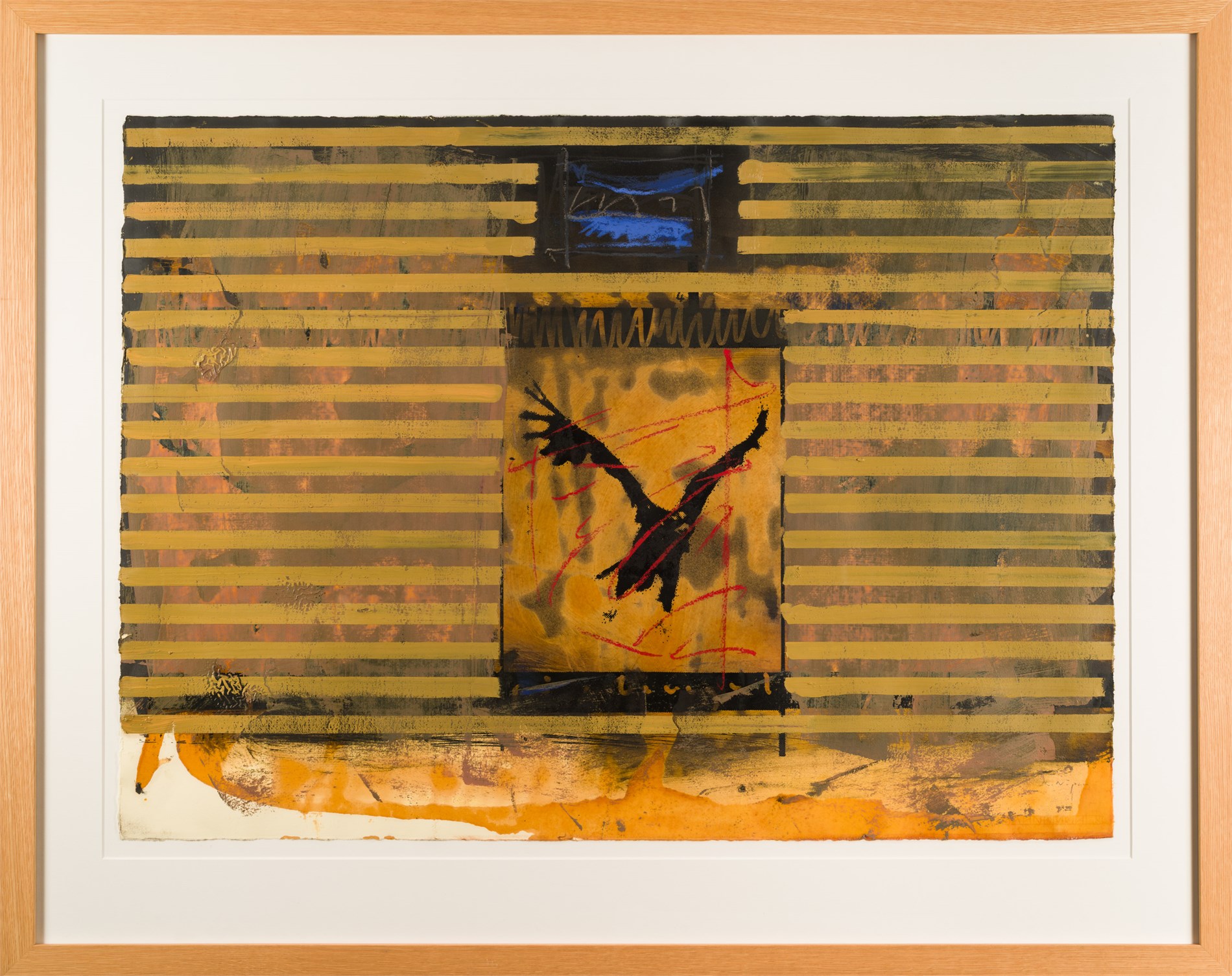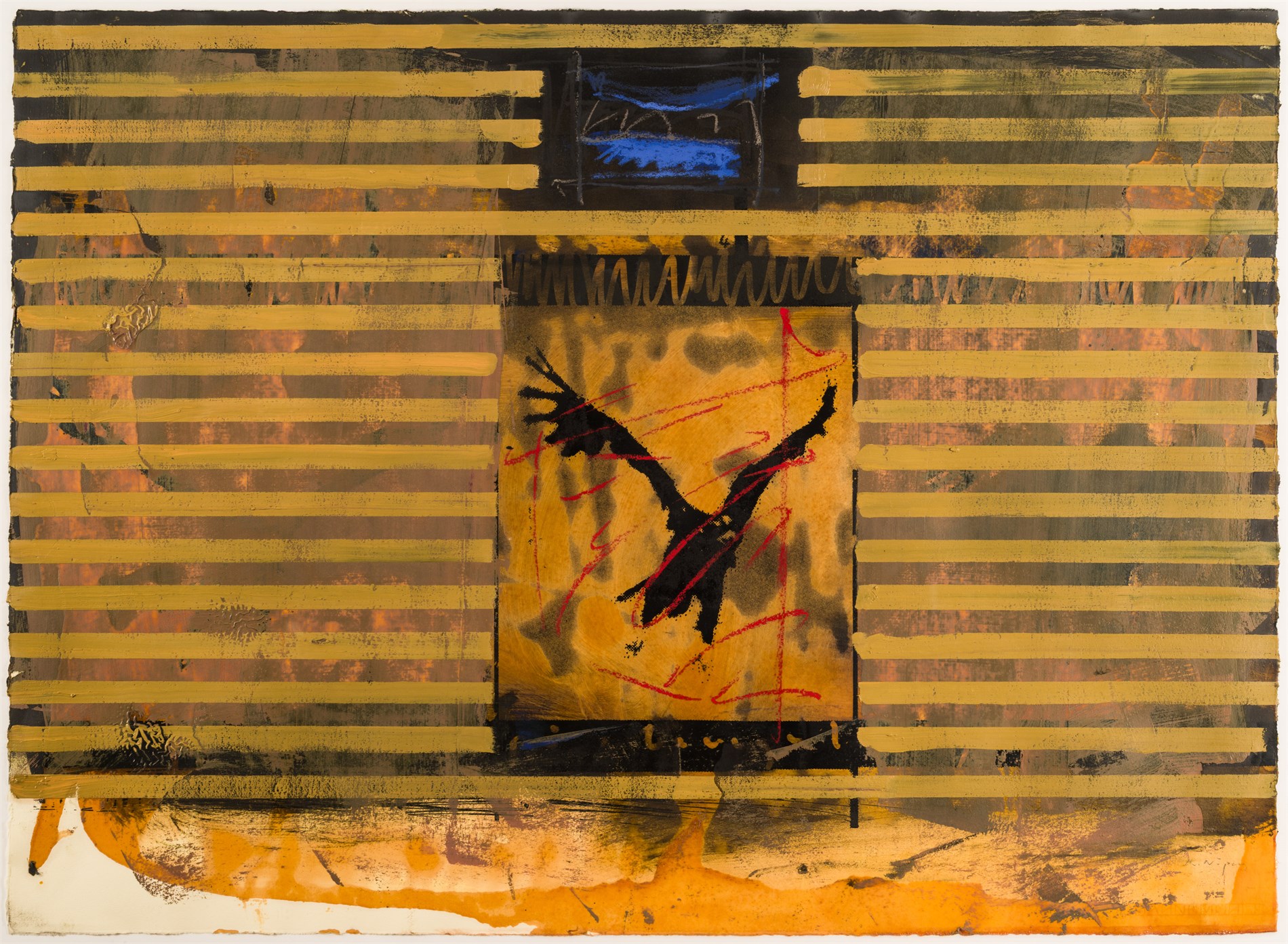 Flygende, Olje, pastell og akvarell på papir, 79 x 107 cm, Signert nede til høyre: K Nupen