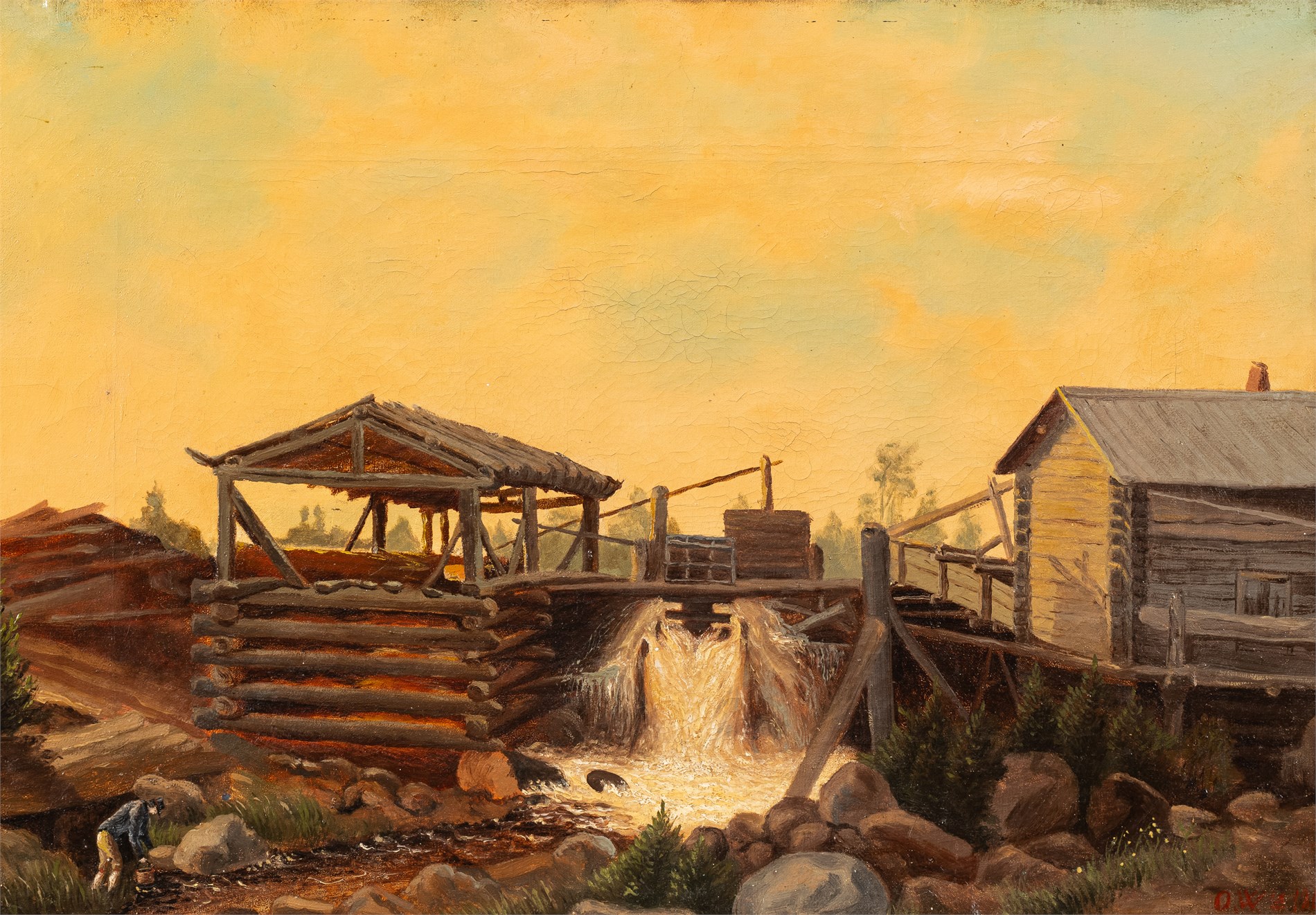 Olje på lerret, 30 x 44 cm, Signert nede til høyre: O W T 1862