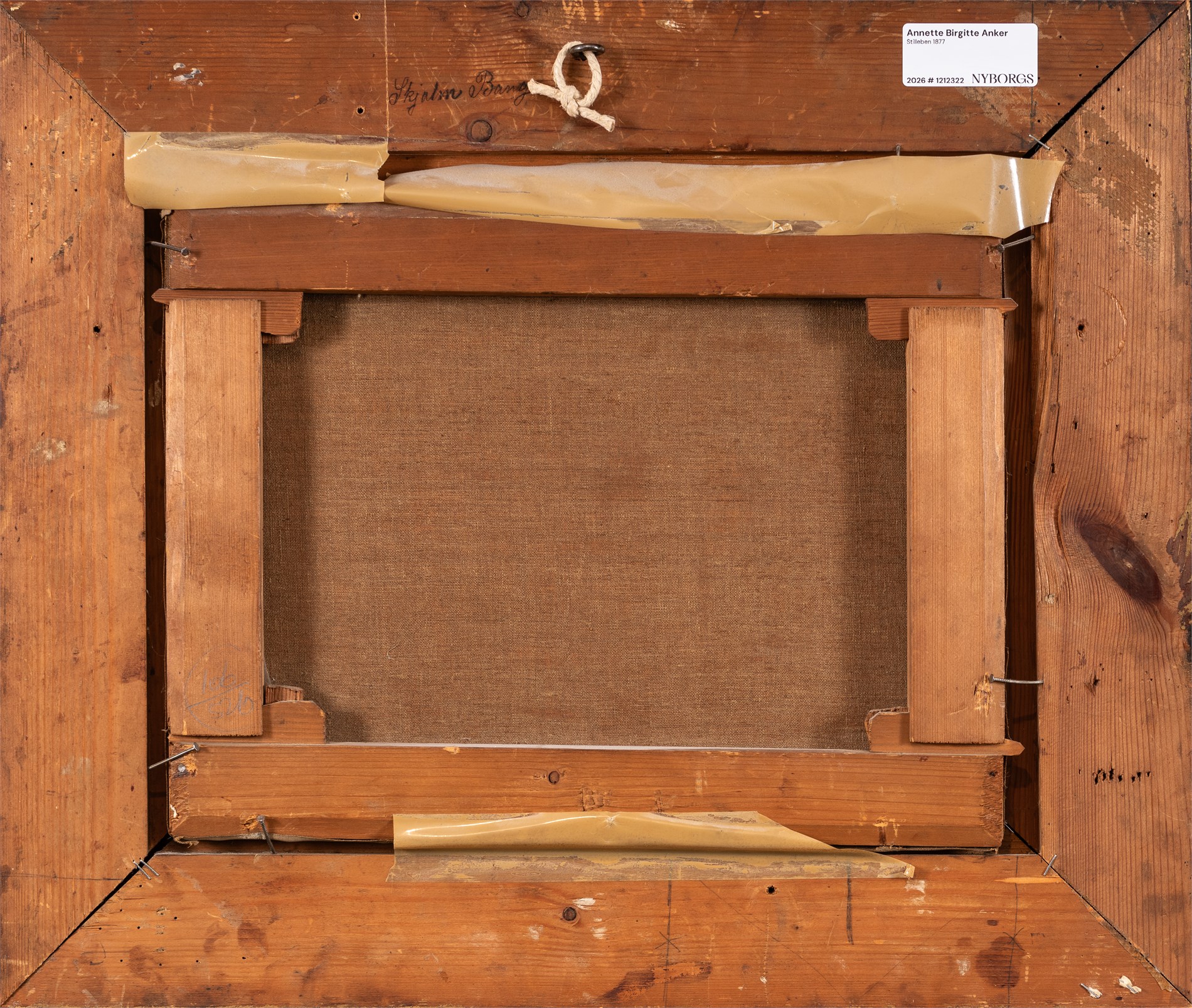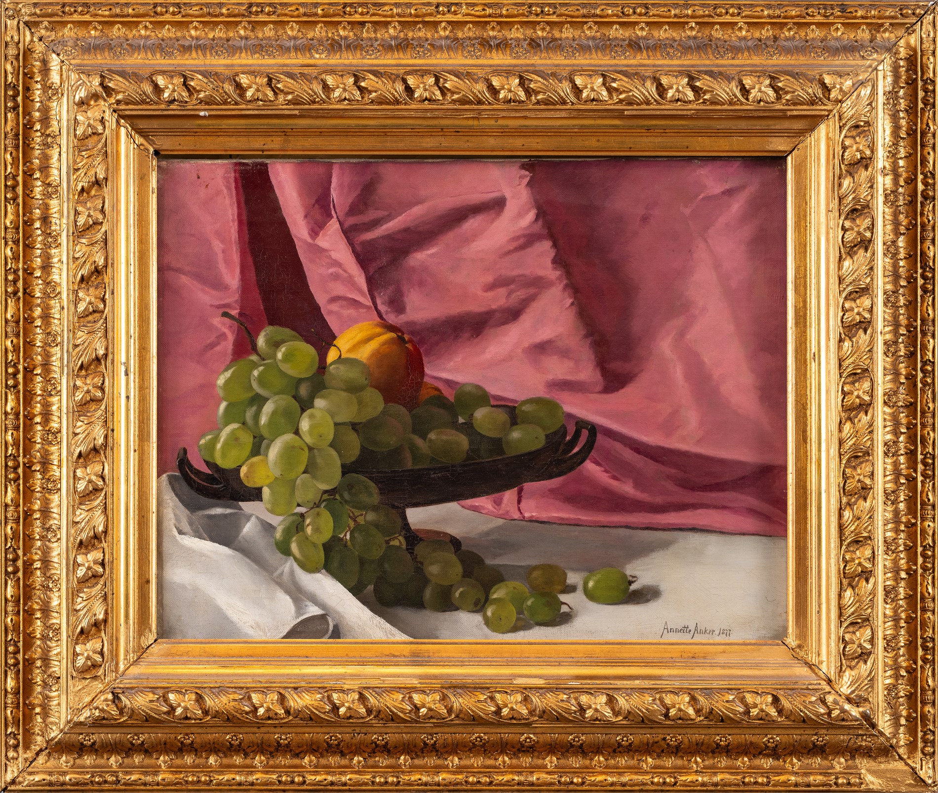 Stilleben 1877, olje på lerret, 30 x 38 cm, signert nede til høyre: Annette Anker. 1877