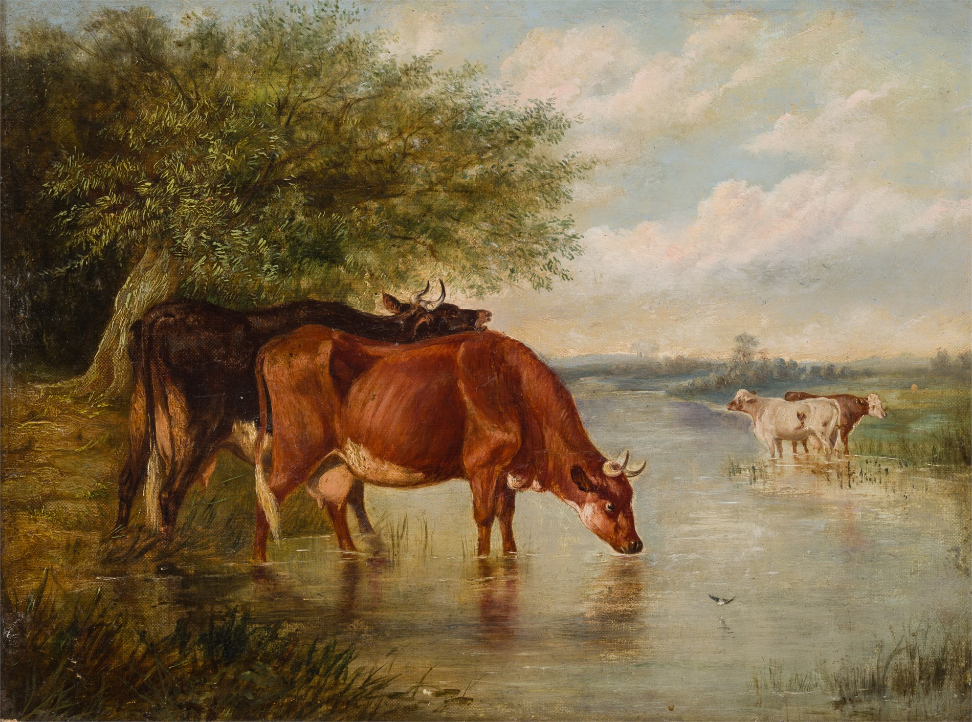 Kyr ved vanningssted, Cantebury, 1849, olje på lerret, 30 x 40 cm, signert nede til venstre