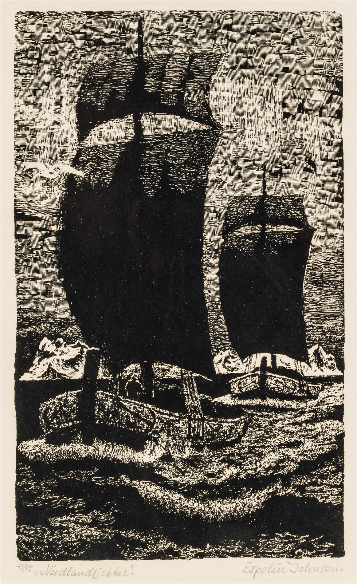 Serigrafi, 43/75, 25 x 15 cm, signert nede til høyre: Espolin Johnson, 1970
