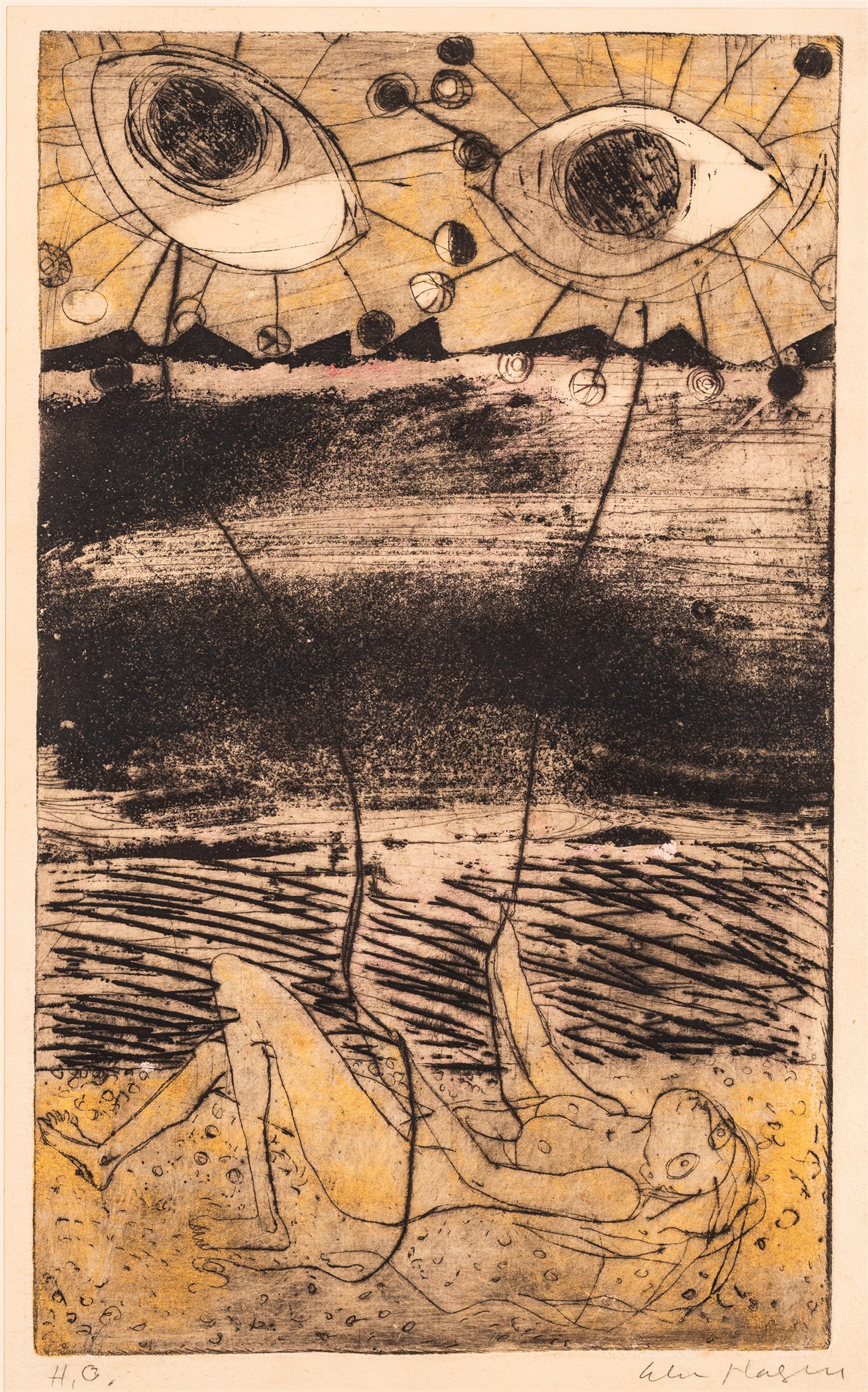 Etsning, H.C. 40 x 24 cm, Signert nede til høyre: Else Hagen