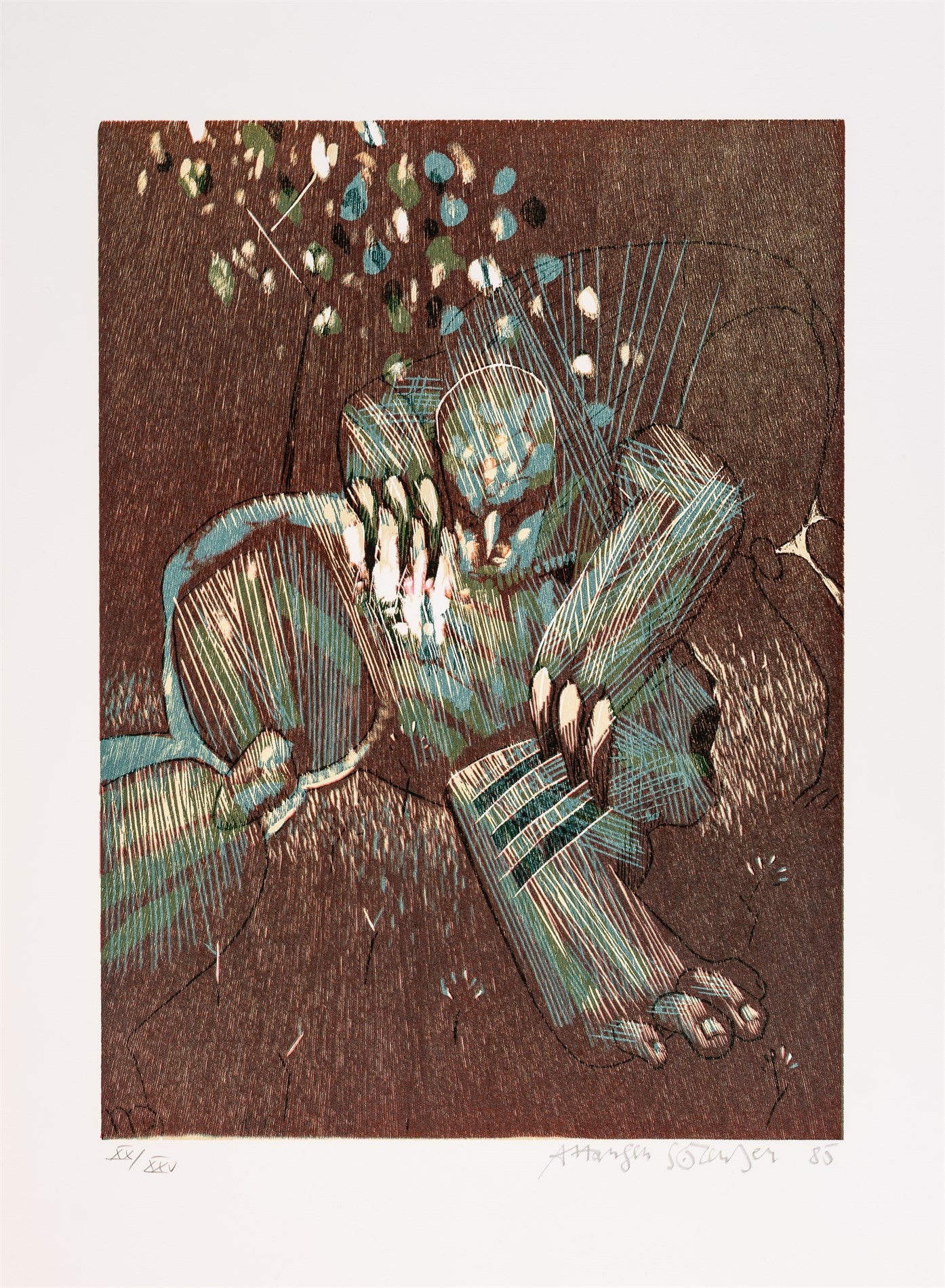 Tresnitt, XX/XV, 52 x 38 cm, Signert nede til høyre: A. Haugen Sørensen, Uten ramme