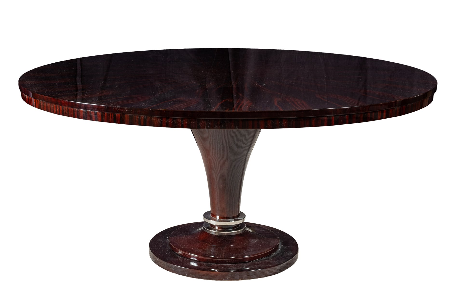 Art deco, 1930-tallet. Lakkert macassar-finér med ebonisert understell med forkrommede detaljer.