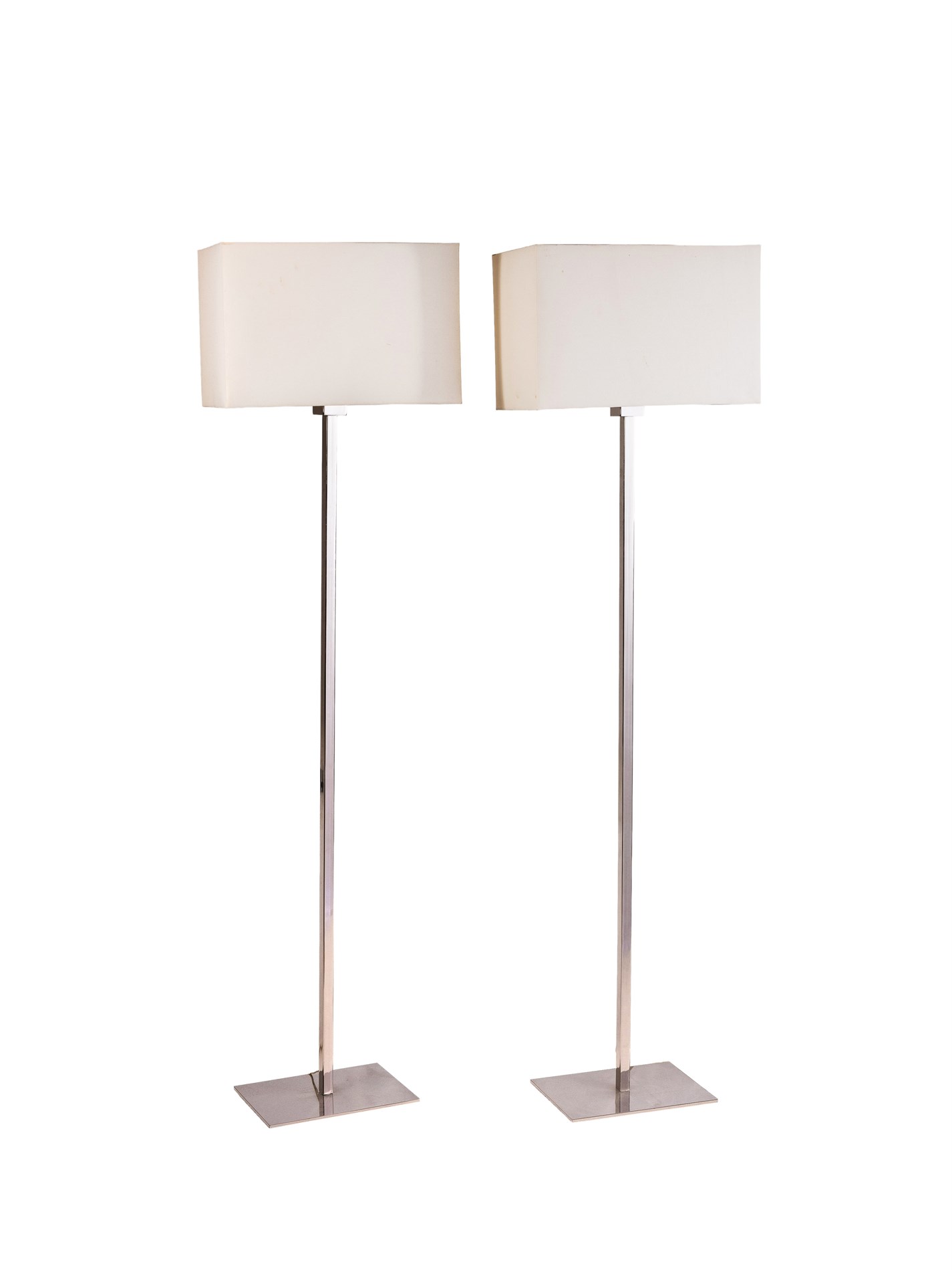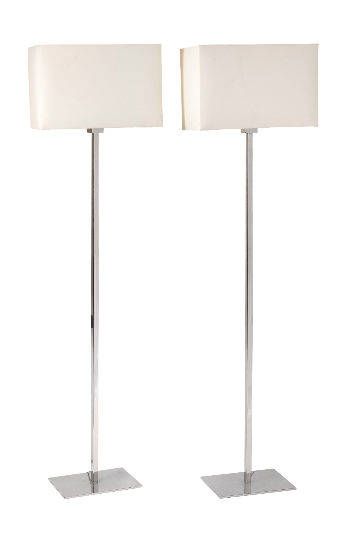 Astro Lightning. Forkrommet utførelse. Én sokkel hver til E27. Rektangulære, beige skjermer.