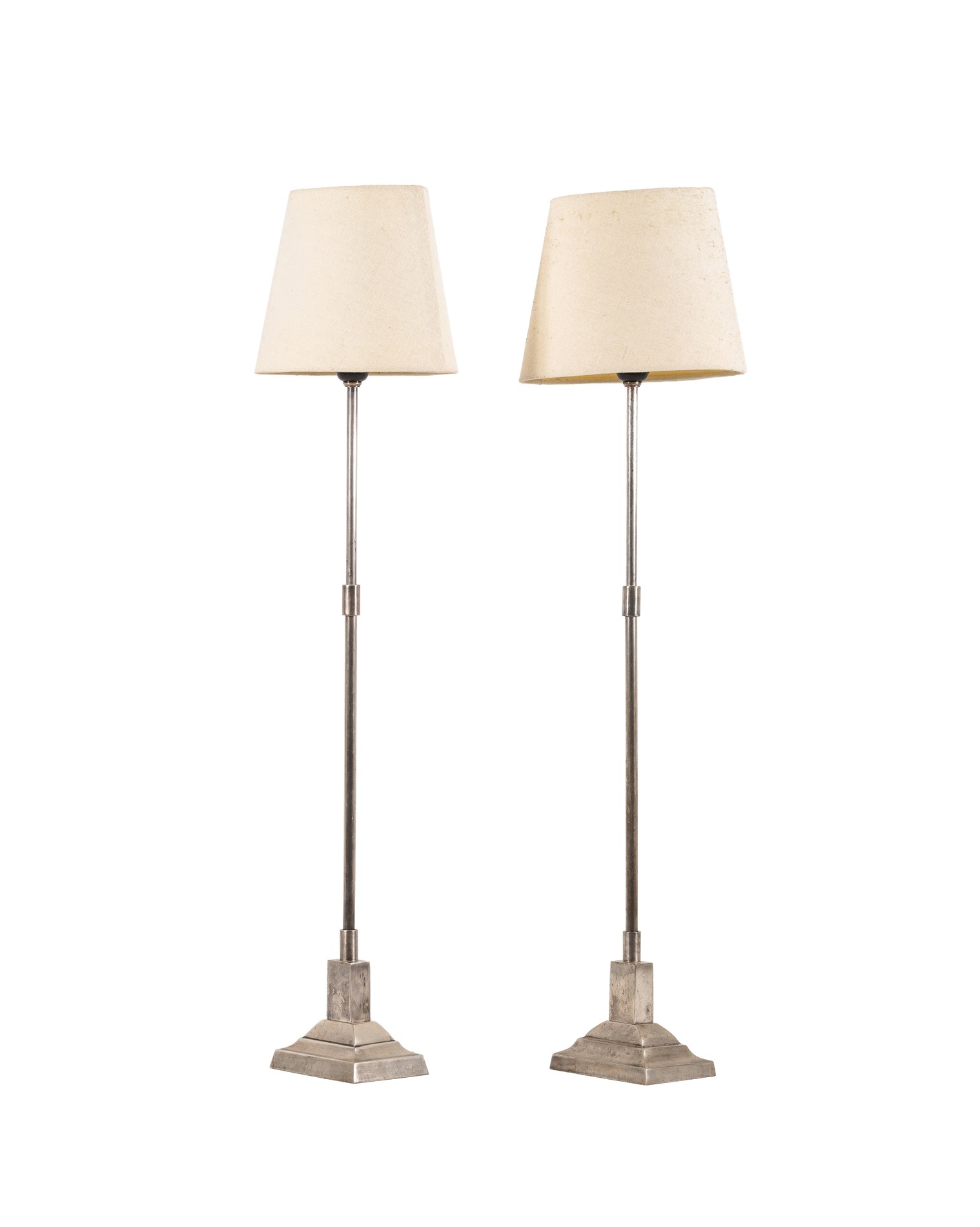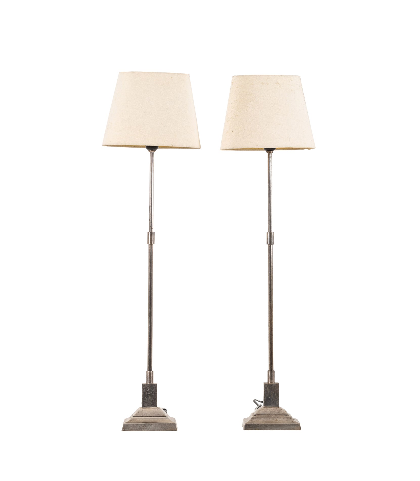 Nyere produksjon i klassisk stil, med antikk-finish. Én sokkel hver til E27. Ovale skjermer i beige.
